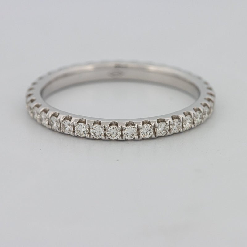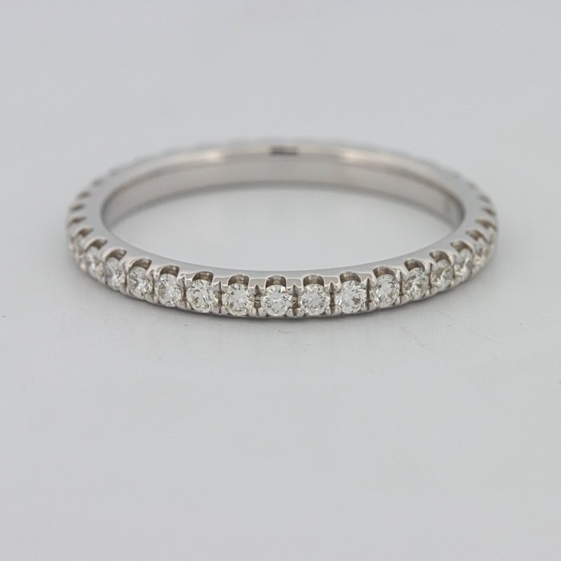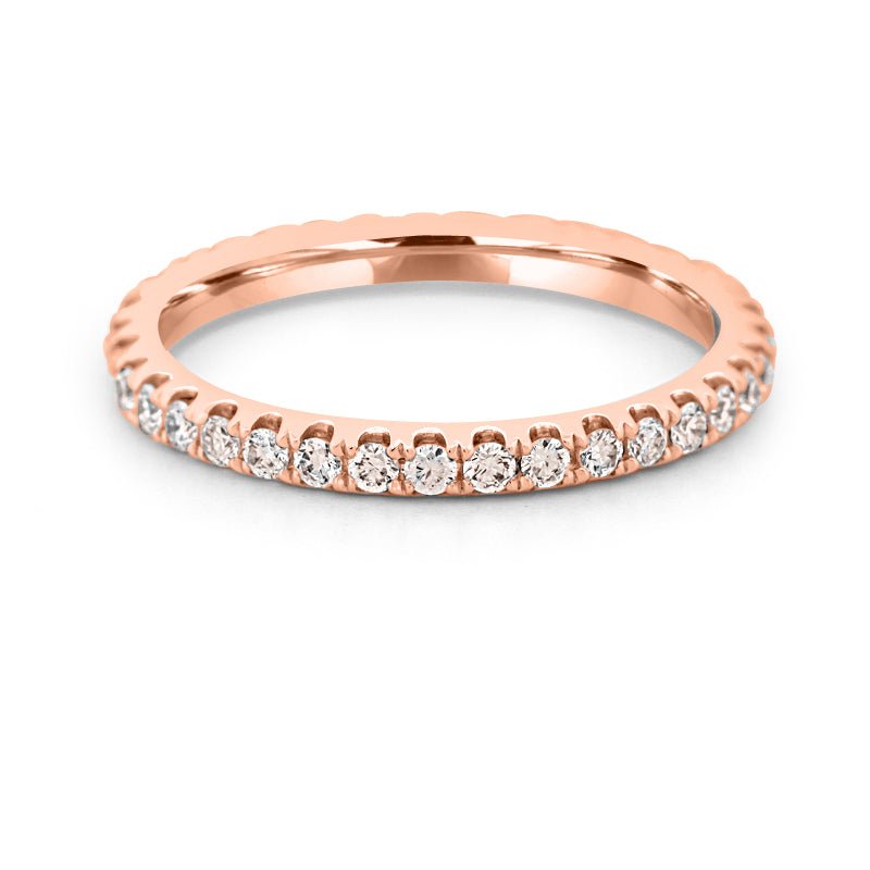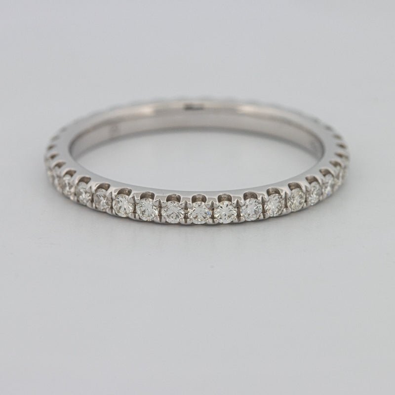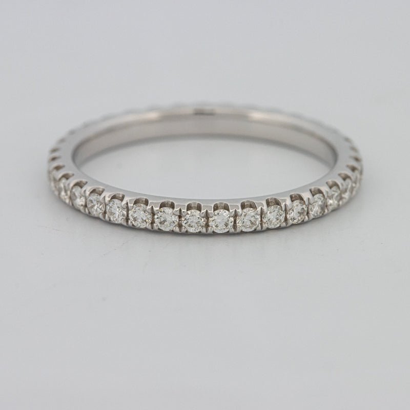 Nieprzerwane koło diamentów o kolorze F/G i czystości VS, o łącznej wadze 1,00 ct, zapewnia olśniewający blask w eleganckim profilu 2,00 mm—idealne do noszenia solo lub w zestawieniu.