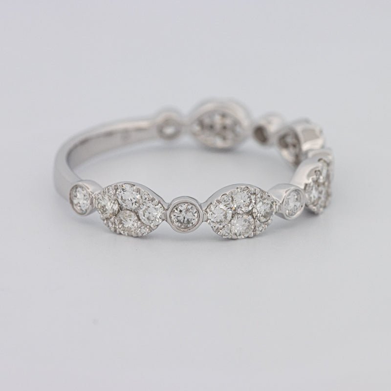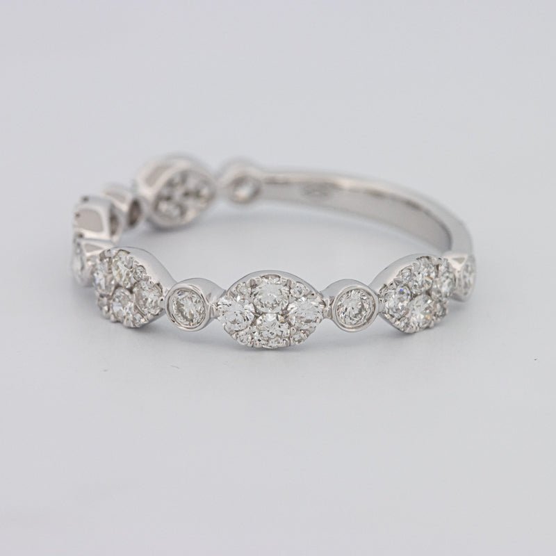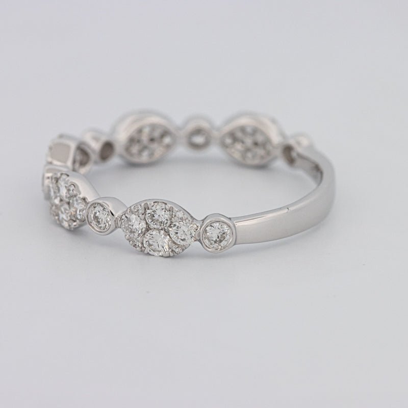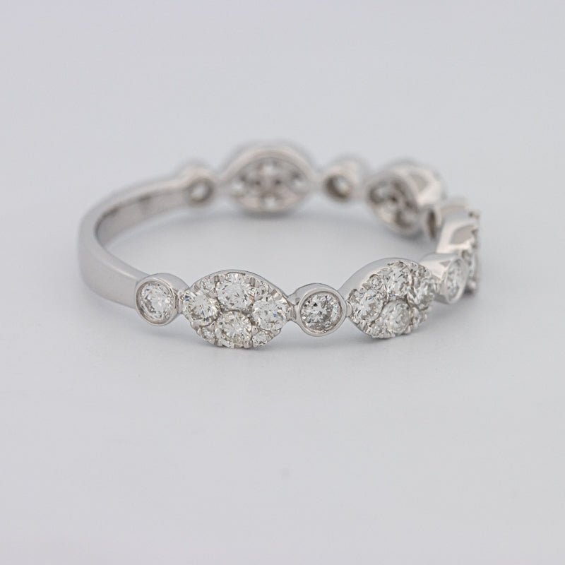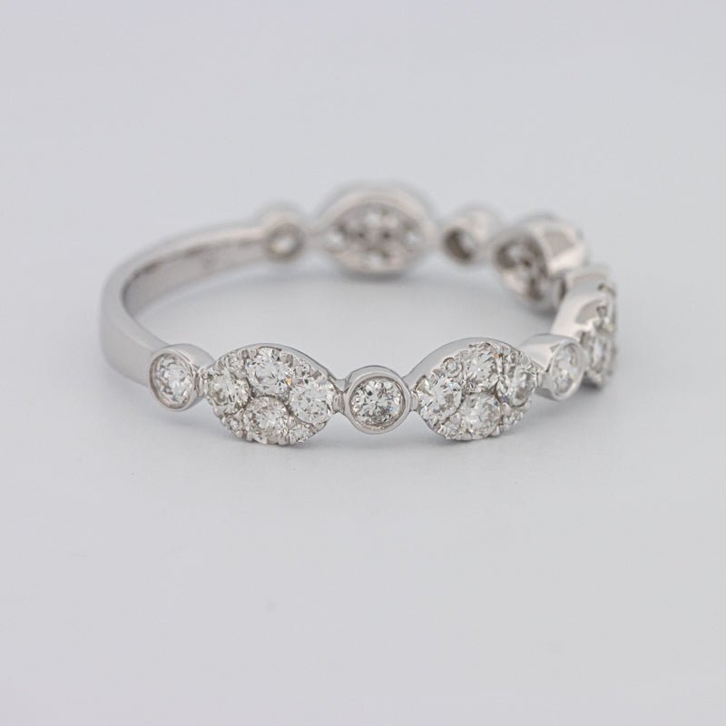Wykonana z 18K białego złota (1.77g), ta obrączka półwieczności jest zaprojektowana do łatwego układania i codziennej elegancji — klasyk rocznicowy.