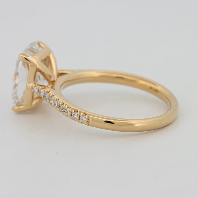 3.50 ct diament w szlifie poduszkowym z certyfikatem IGI w kolorze E–F i czystości VS1–VS2 stanowi centralny punkt projektu z bogatymi fasetami i wyrafinowaną symetrią.