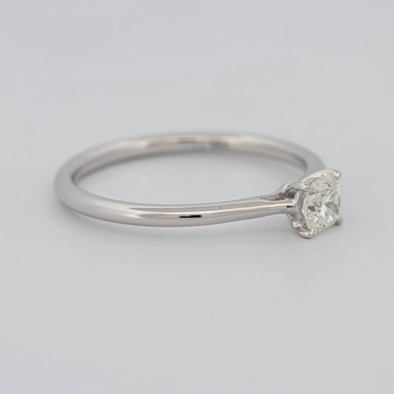 Um quadrado radiante de 0.30 ct certificado pela HRD em cor I e clareza VVS2 oferece uma definição de faceta nítida com um brilho vivo e refinado.