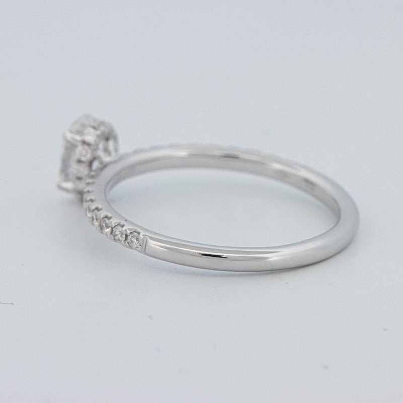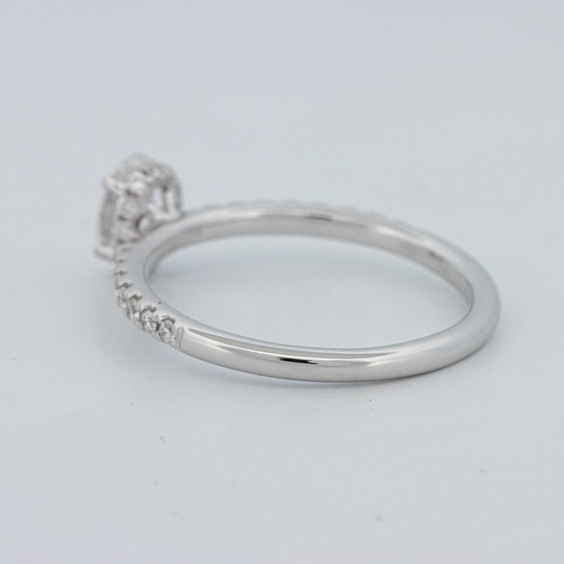 O aro com pavé apresenta 0.30 ct de diamantes naturais como acentos, adicionando uma cintilação refinada enquanto mantém a pedra central como o ponto focal.