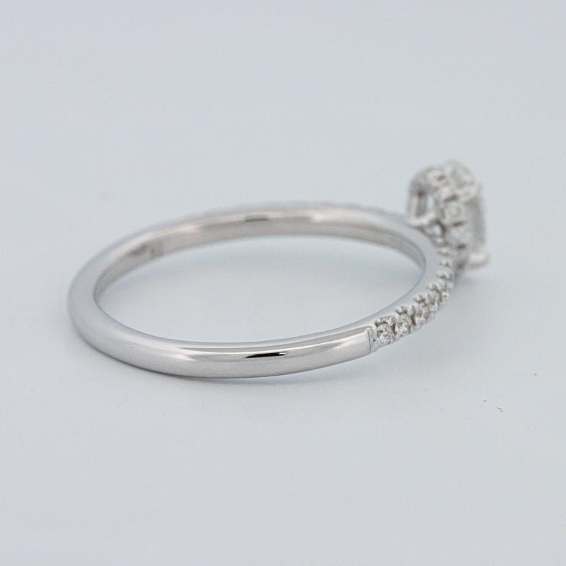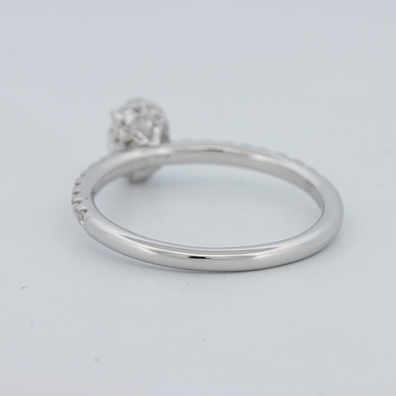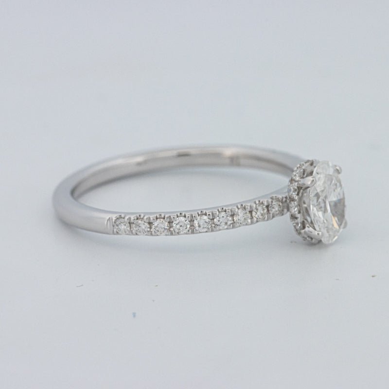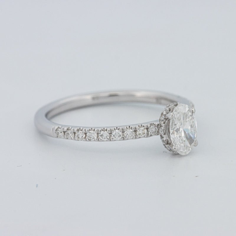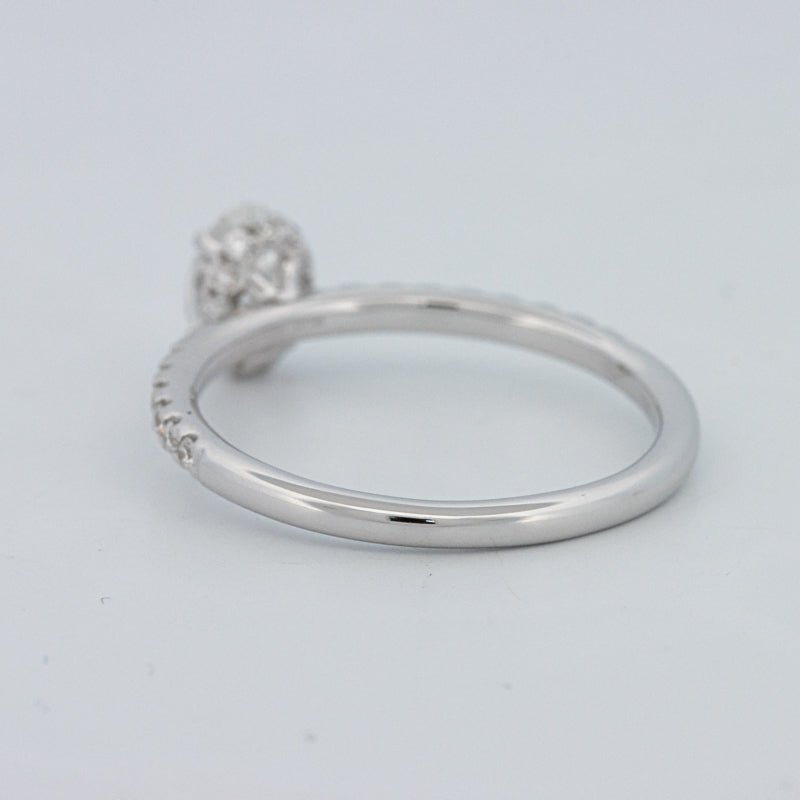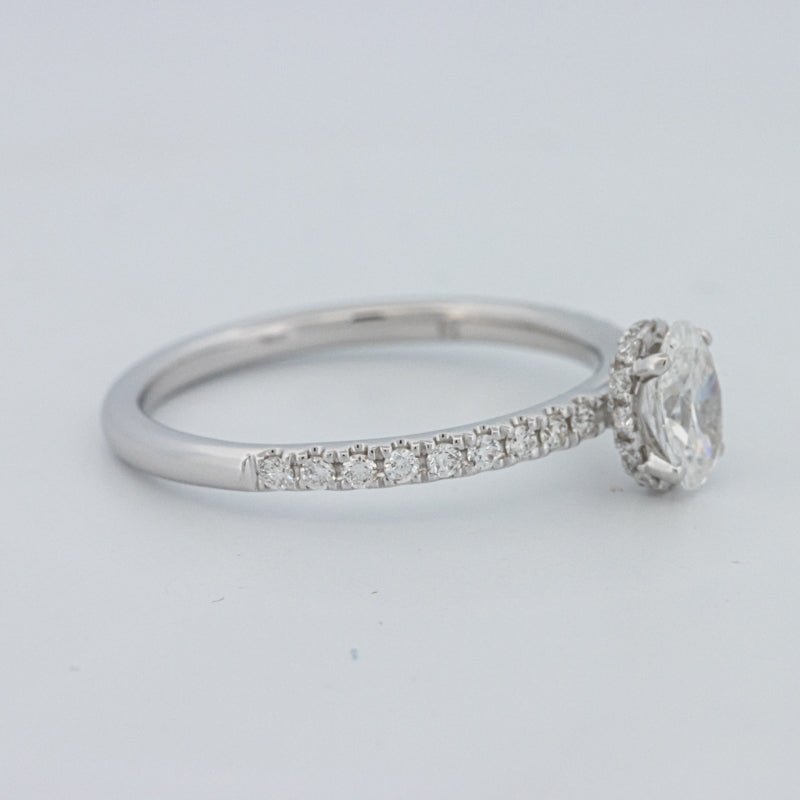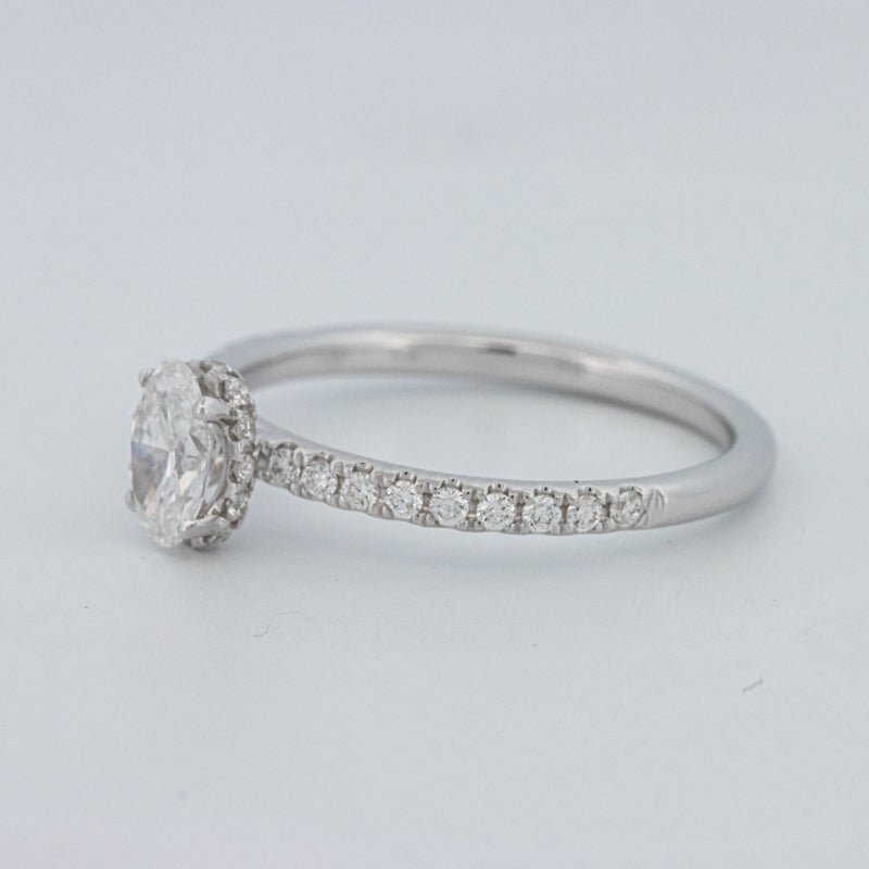 Um diamante oval lab-grown de 0.50 ct D/VVS ancora este pavé solitaire under-halo, oferecendo um brilho alongado com um halo subtil escondido que brilha por baixo.