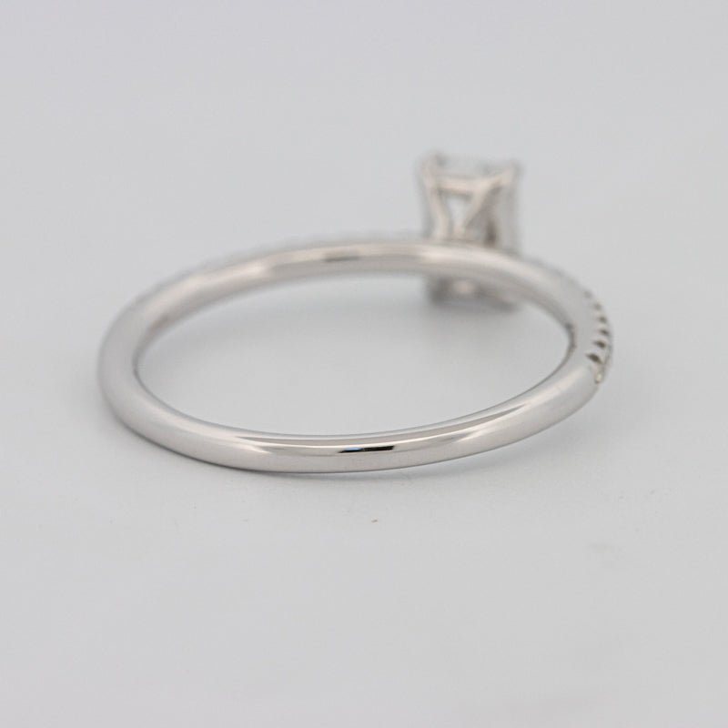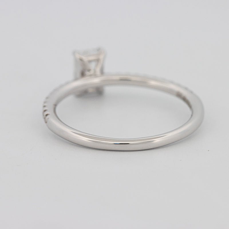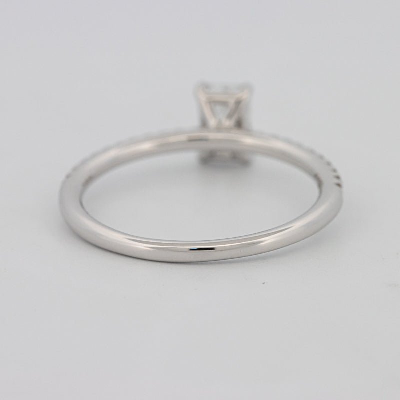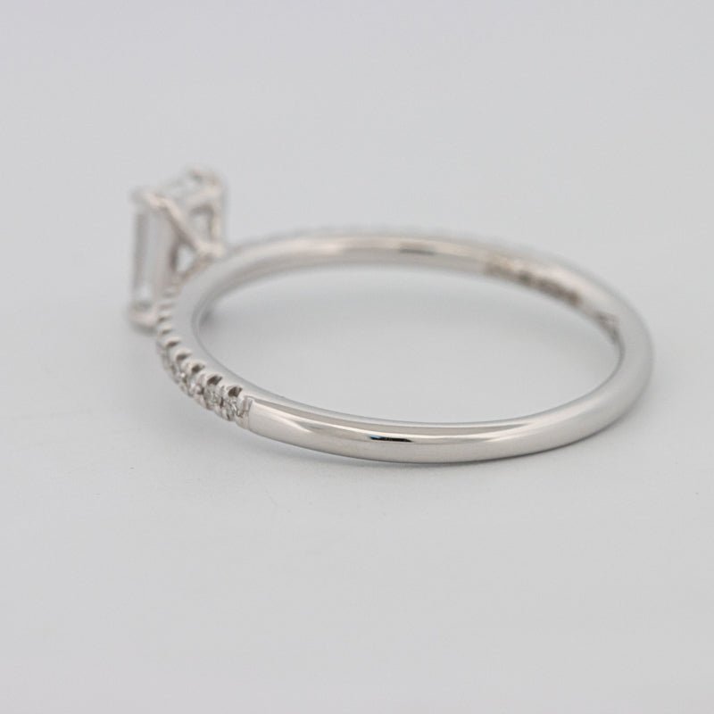 O Anel Pavé Solitário Corte Esmeralda centra um corte esmeralda de 0.50 ct certificado GIA em cor D e pureza VS1, oferecendo um brilho nítido de corte em degraus com uma elegância intemporal.