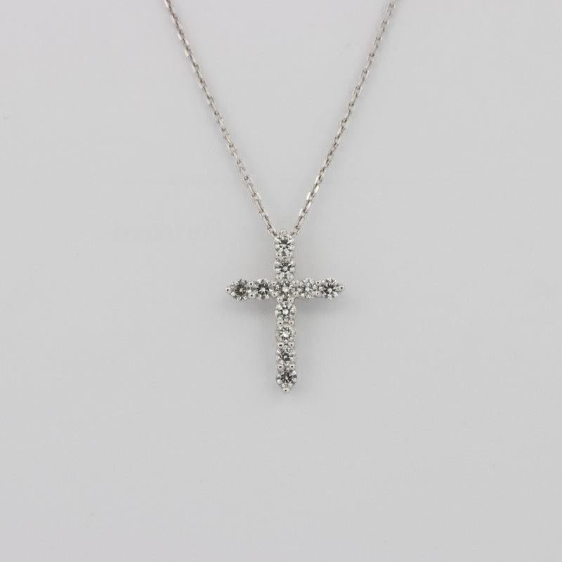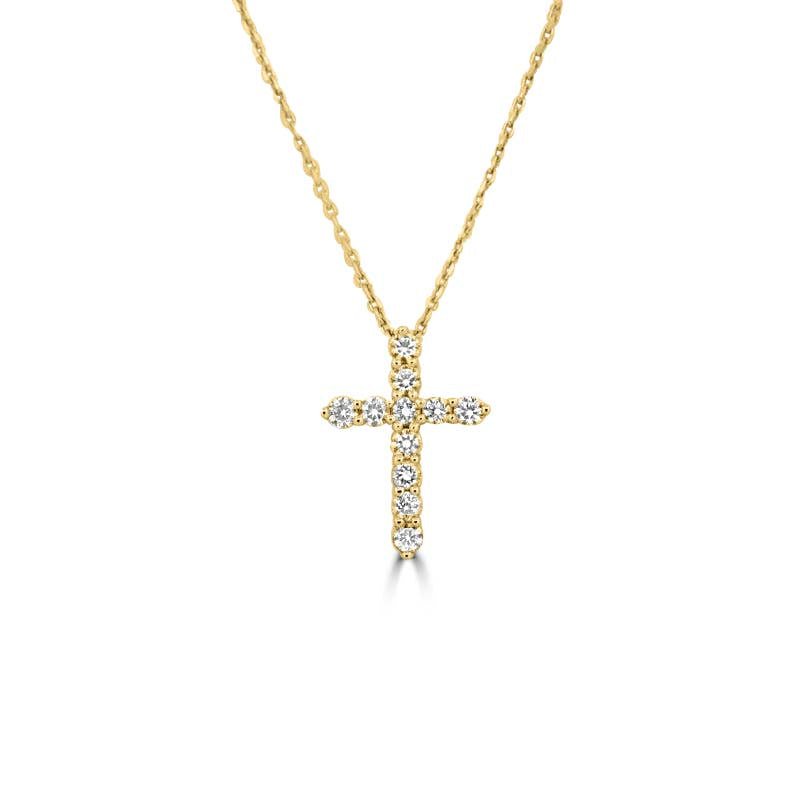O siluetă rafinată de cruce, împodobită cu 0.60 ct de diamante strălucitoare F/VS, oferă o strălucire semnificativă într-un profil mic și de zi cu zi.