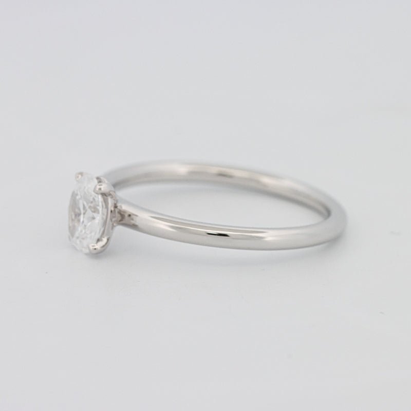Un diamant oval de 0.50 ct D/SI1 certificat GIA oferă o strălucire luminoasă și alungită într-un profil solitar rafinat.