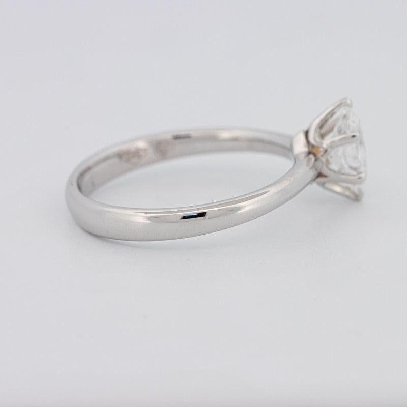 Montat în aur alb 18K, solitaire-ul minimalist amplifică simetria pietrei pentru un farmec atemporal.