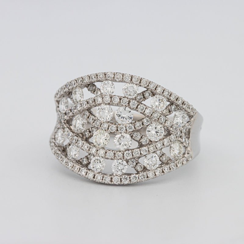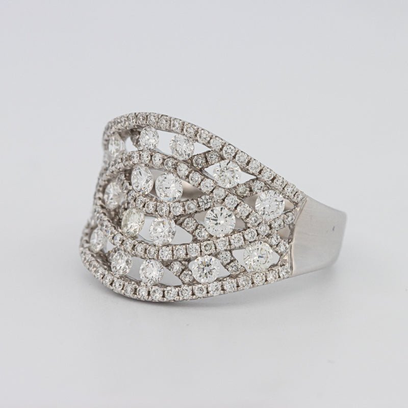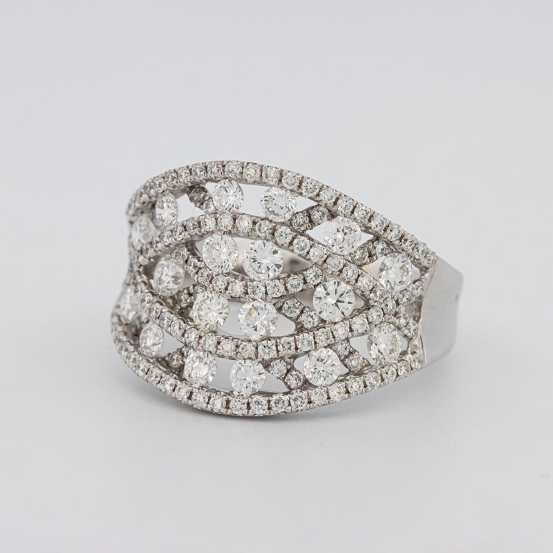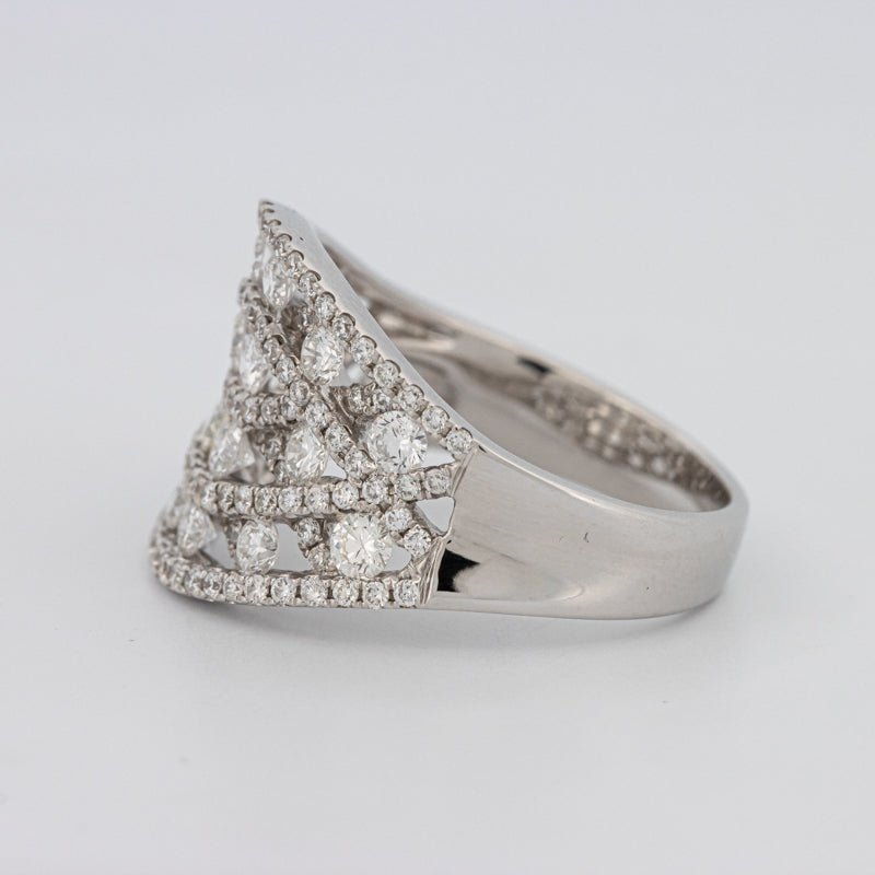 O siluetă lată, împodobită cu 1.60 ct de diamante F/VS, creează o declarație îndrăzneață și captivantă.