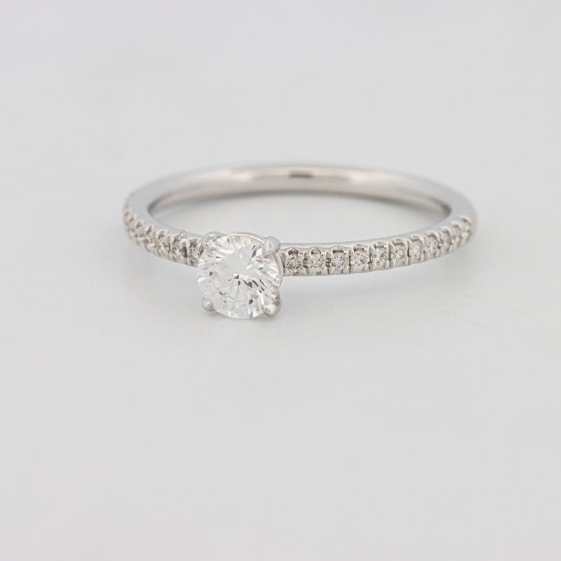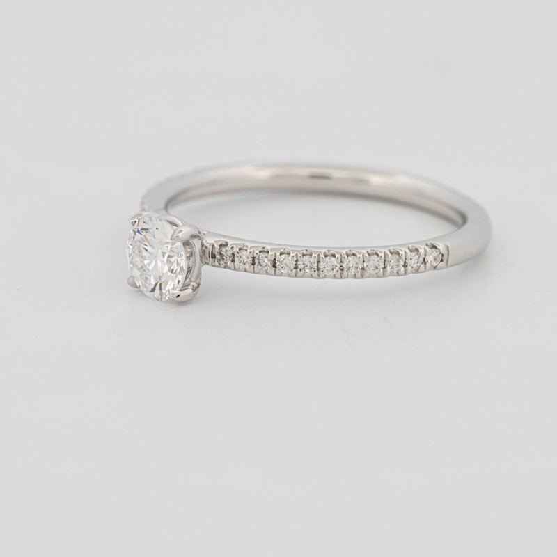 Certificat HRD • Lab‑Grown Round Brilliant 0.35 ct — D / VVS1 • Accente Pavé Naturale 0.20 ct • Aur Alb 18K • 2.00g