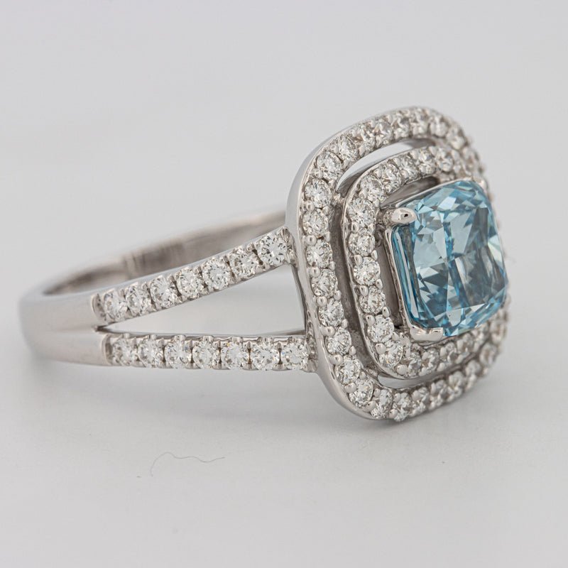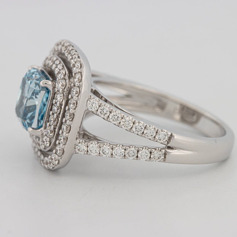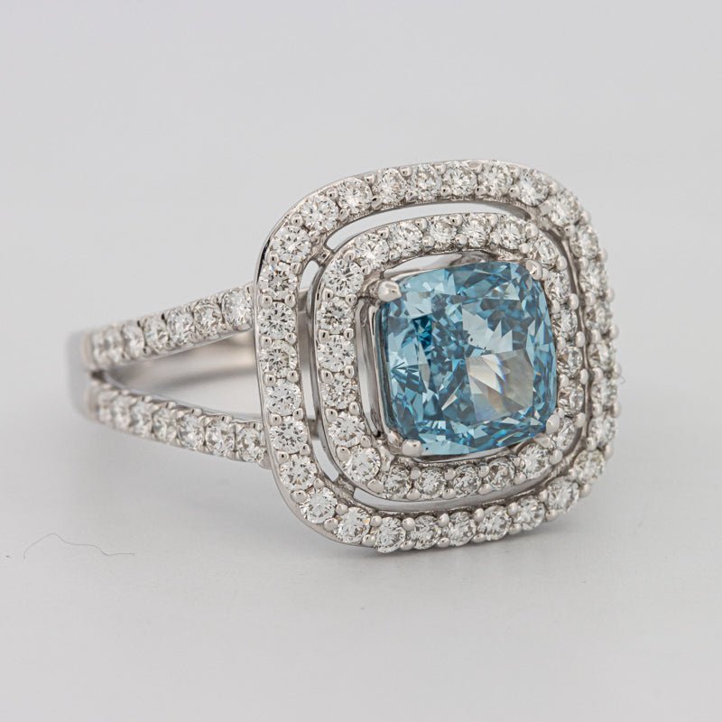 | Diamant Central: | Lab‑grown cushion 2.00 ct — Fancy Vivid Greenish Blue / VS1 (HRD) |