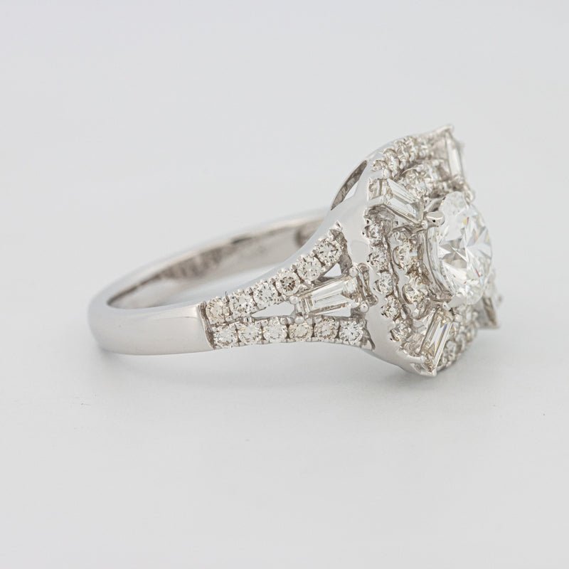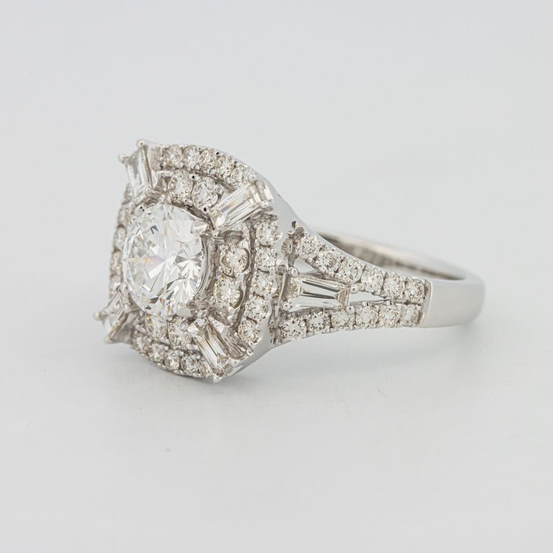 | Diamant Central: | Lab‑grown round brilliant 1.04 ct — Culoare D / Claritate VS1 (IGI) |