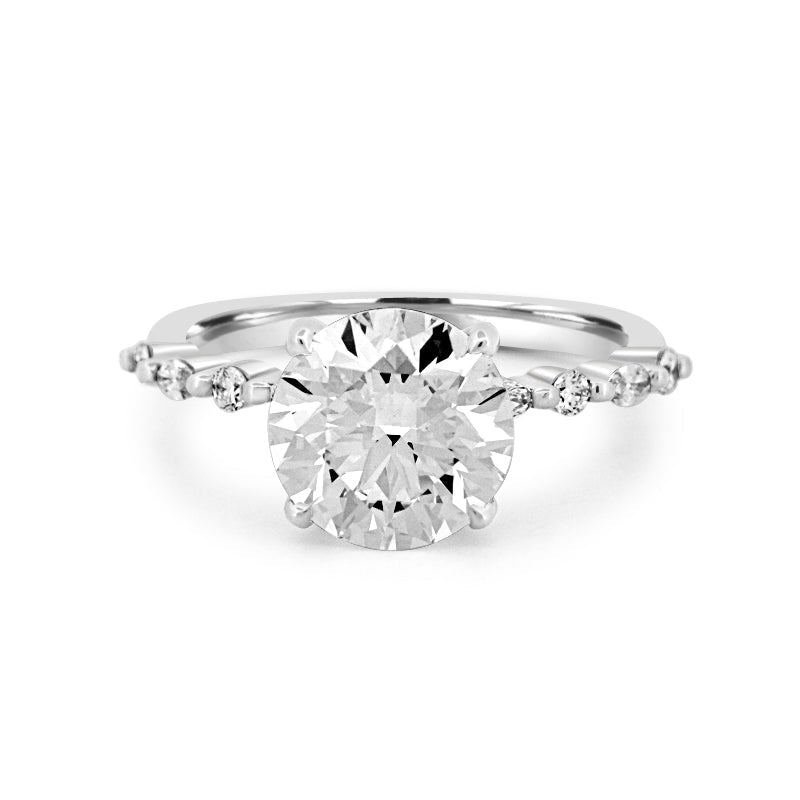 Un impresionant diamant lab-grown de 3.09 ct E/VS1, rotund și strălucitor, este piesa centrală a solitaire-ului „Valentina”, oferind o strălucire albă clară și o claritate rafinată într-un profil atemporal.