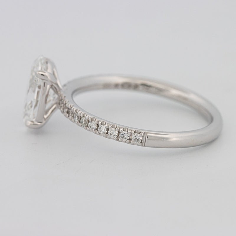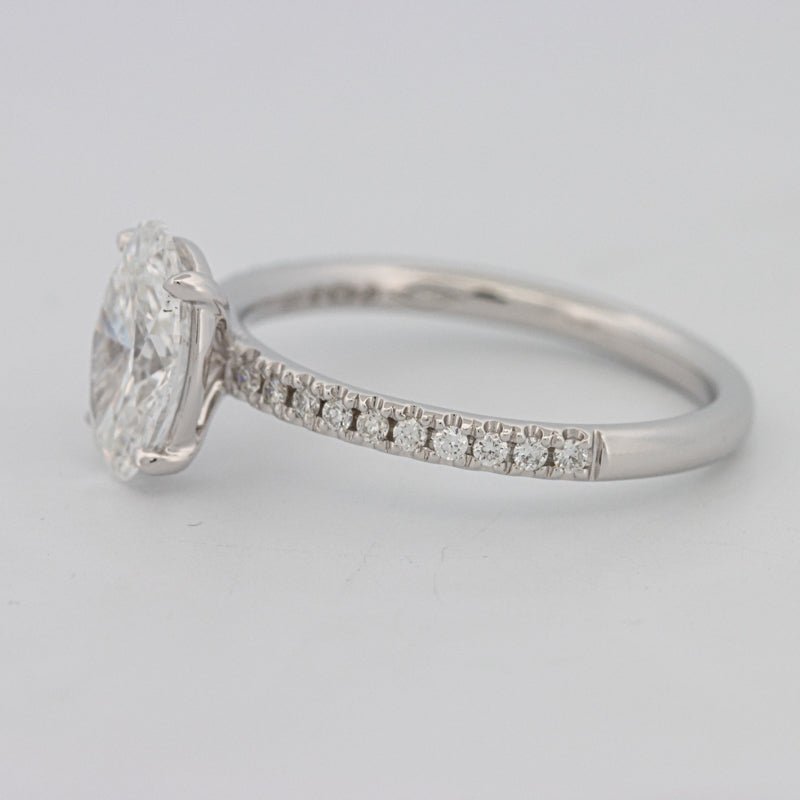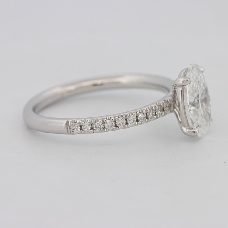 Inel Solitaire Pavé Tăietură Ovală (Crescut în Laborator) are în centru un diamant oval de 1.00 ct crescut în laborator (CVD), certificat IGI, de culoare E și claritate VS1, oferind o strălucire rafinată cu un profil atemporal.