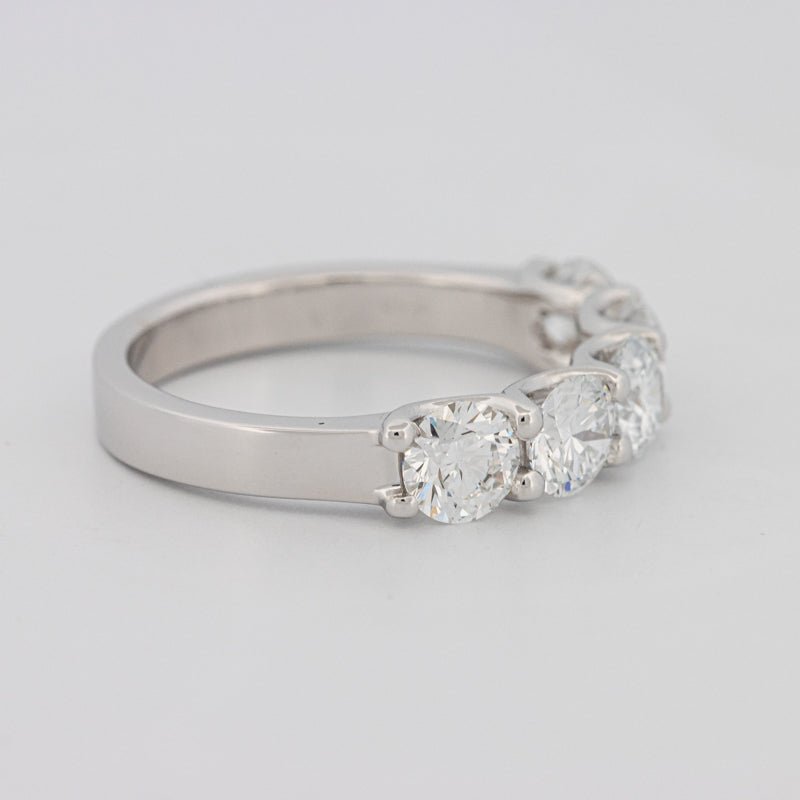5 Half Round Floating Eternity (Lab Grown) prezintă cinci diamante lab grown tăiate brilliant, totalizând 2.00 ct, fiecare având culoarea D și claritatea VS pentru o expunere excepțională de lumină și echilibru.