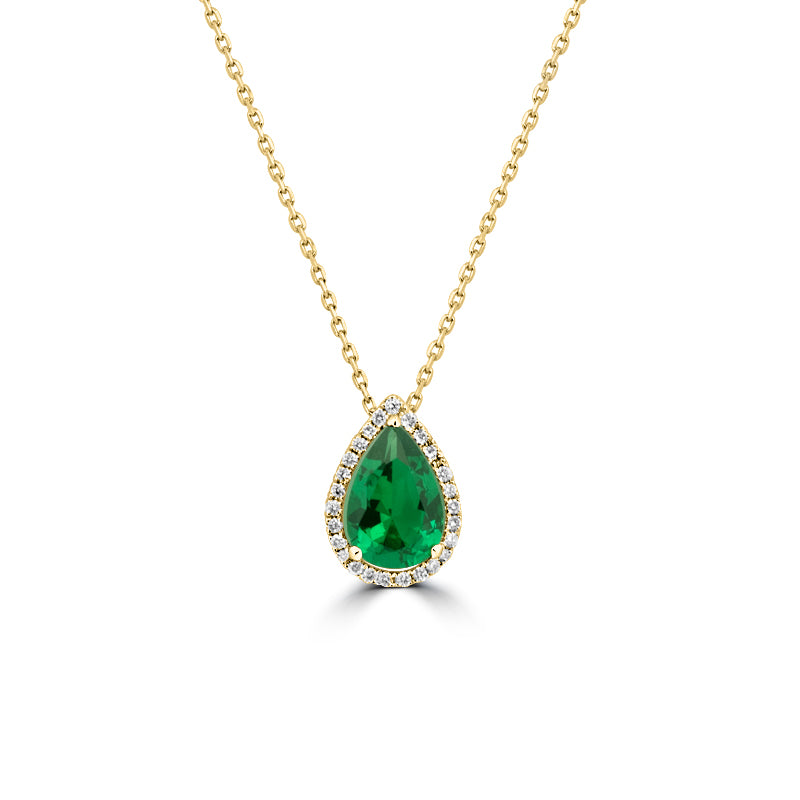 Pandantiv Halo cu Smarald Verde în Formă de Pară, 3 CT