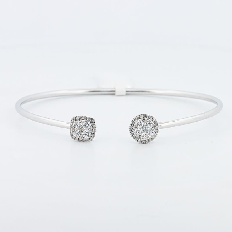 Элегантный гибкий браслет, изготовленный из белого золота 18K (3.80g) с 0.85 ct натуральных бриллиантов яркого цвета F и чистоты VS для утонченного ежедневного блеска.
