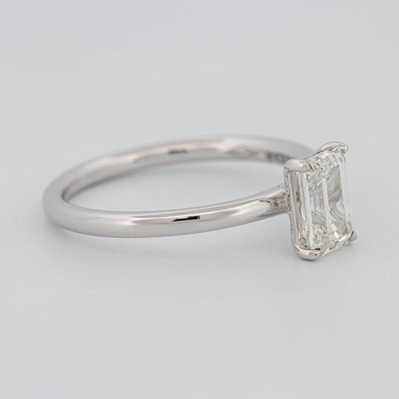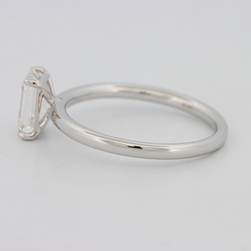 Изготовленный из 18K белого золота весом 2.50g, элегантный профиль солитера подчеркивает удлиненную геометрию для вечного, современного заявления.