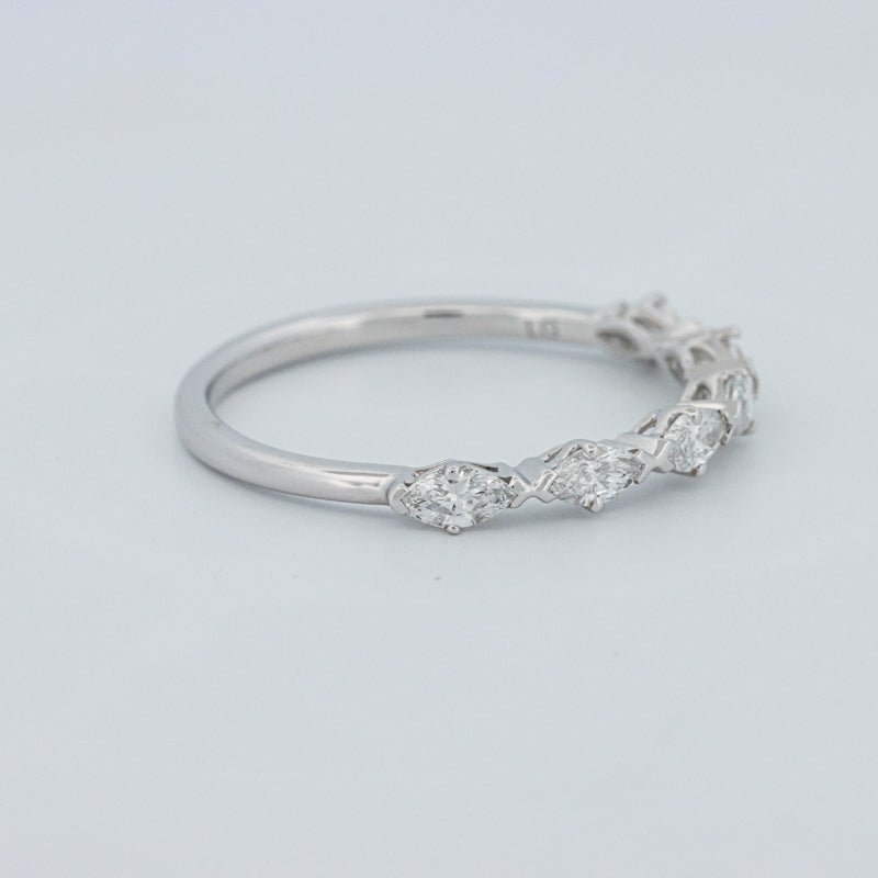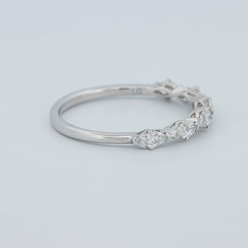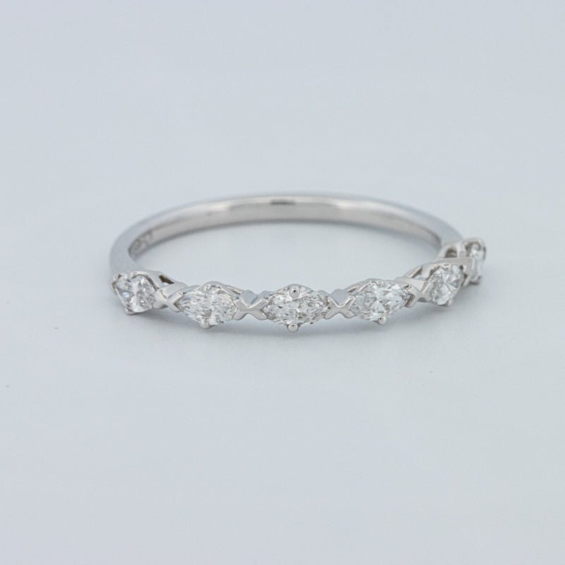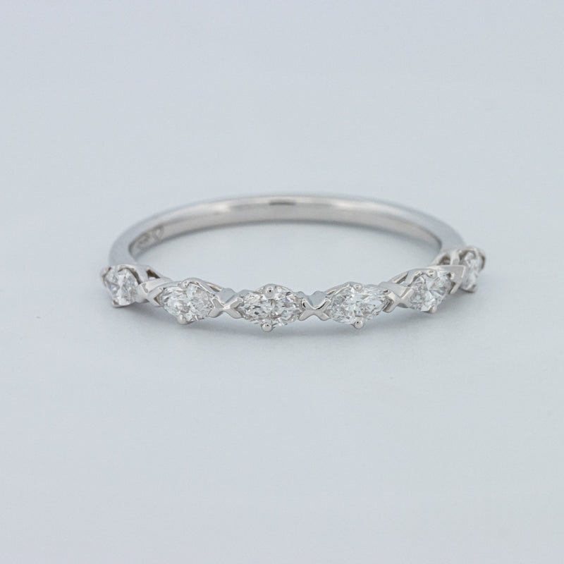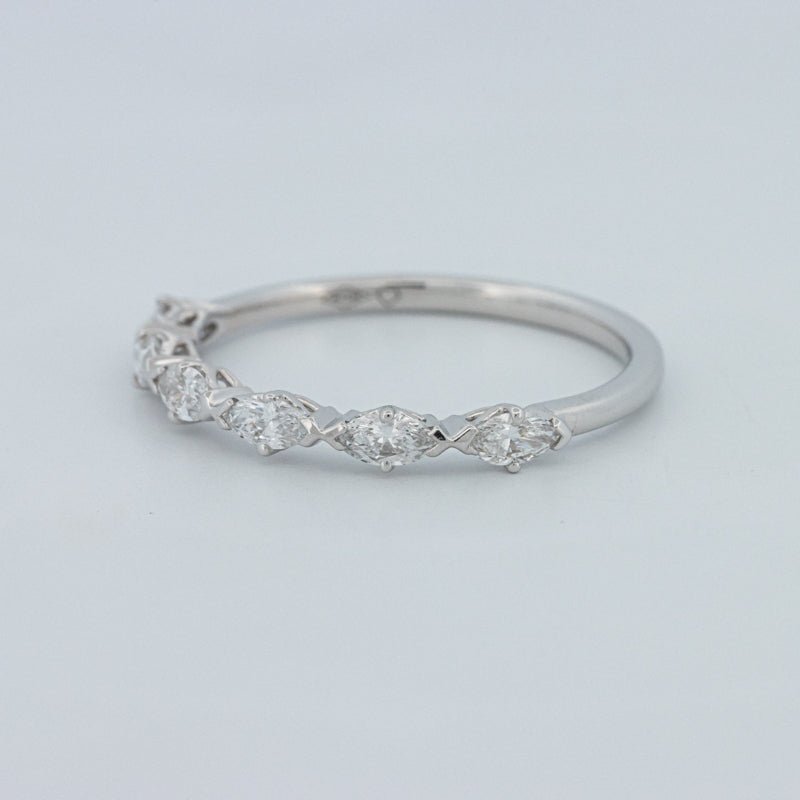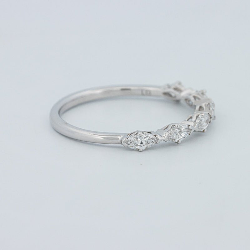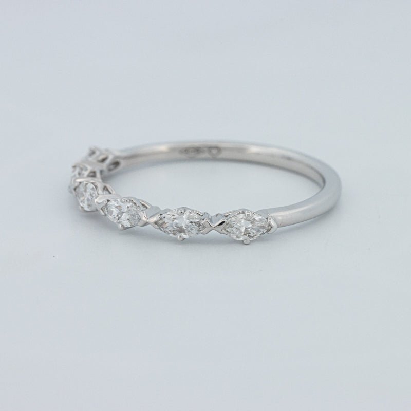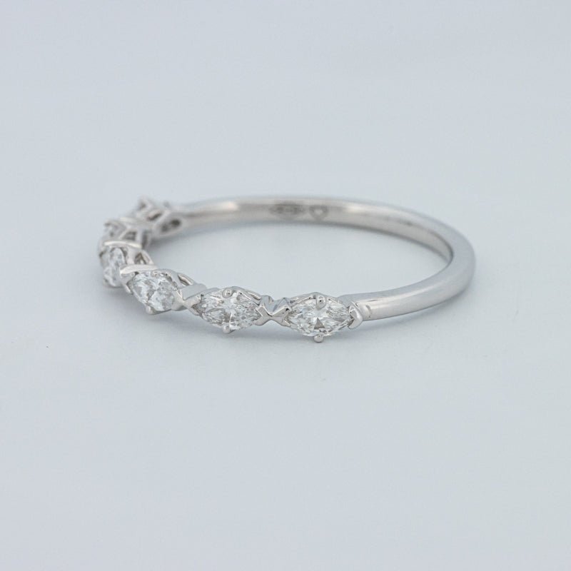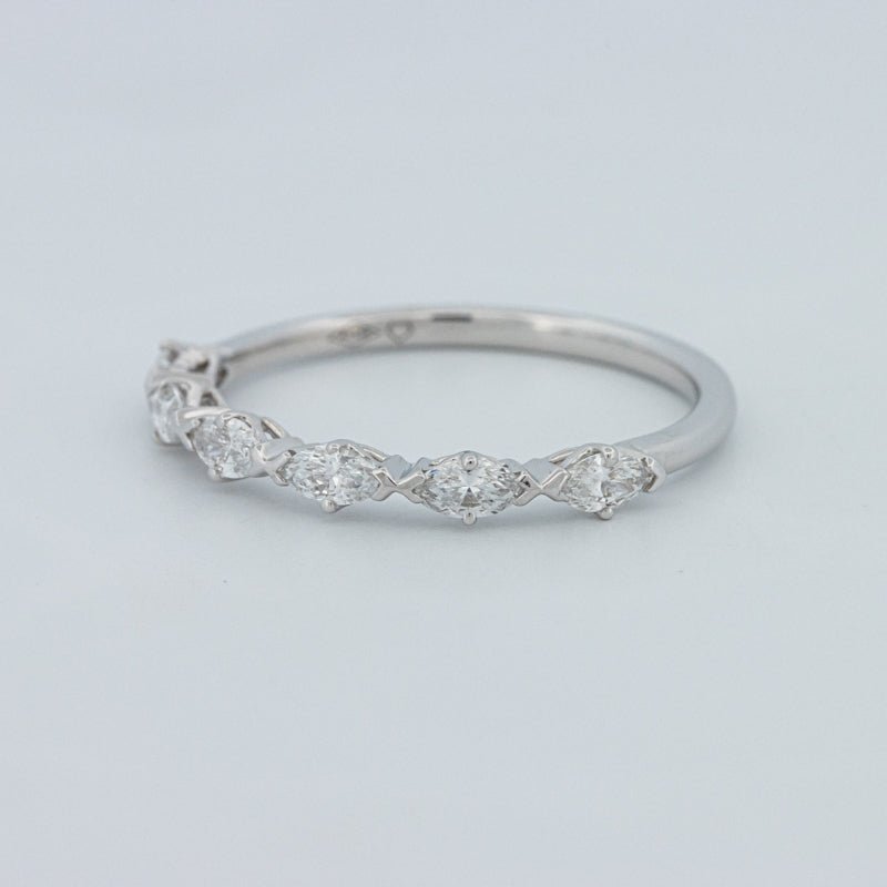Изысканное полукольцо вечности, украшенное 0.50 ct лабораторно выращенных бриллиантов маркиз в ярком цвете F и чистоте VS для элегантного, удлиненного блеска на пальце.