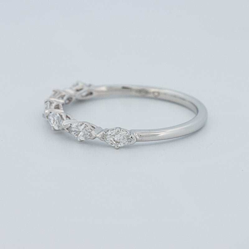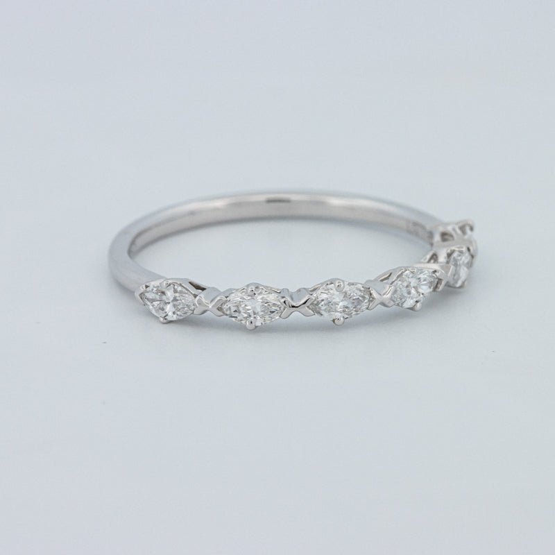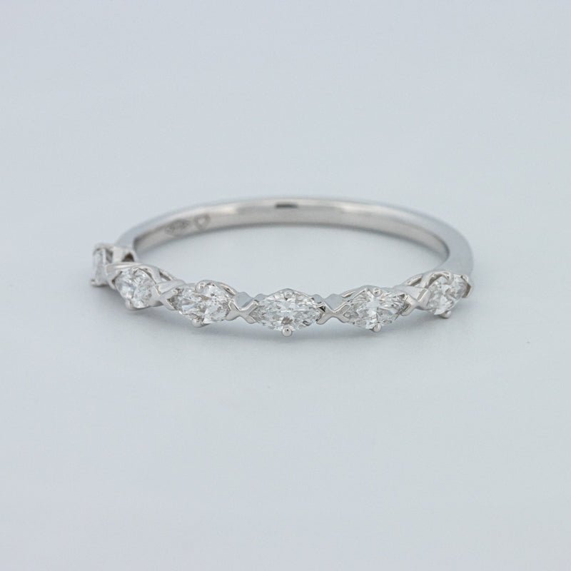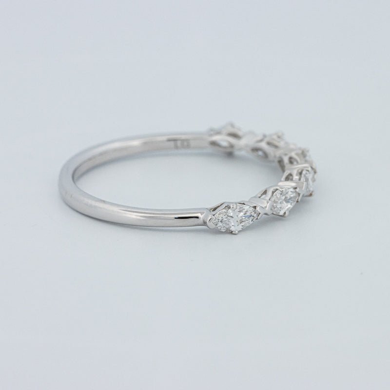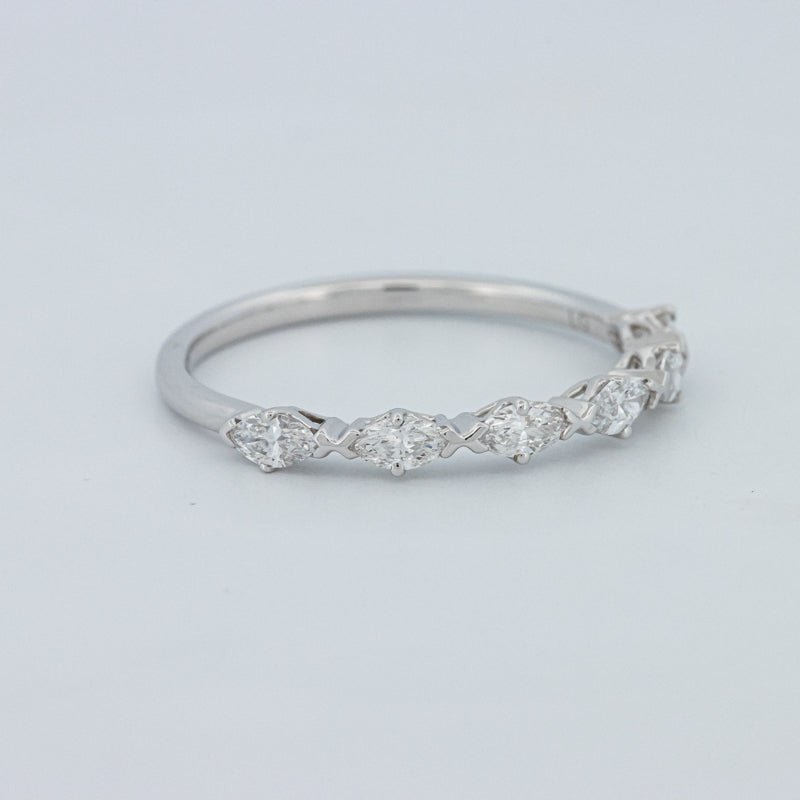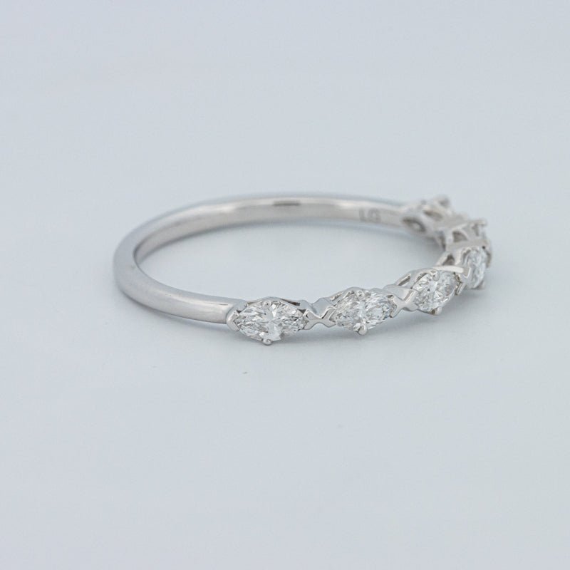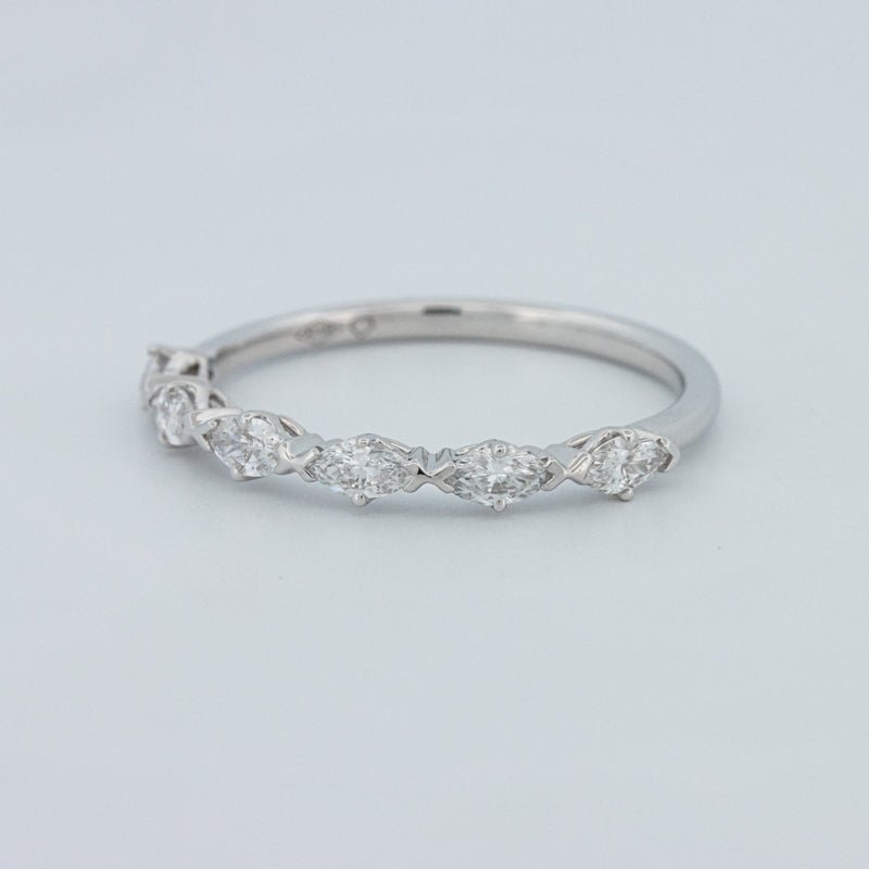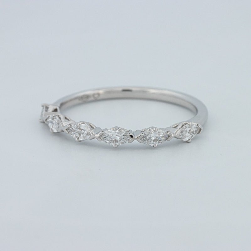 Изысканное полукольцо вечности, украшенное 0.50 ct лабораторно выращенных бриллиантов маркиз в ярком цвете F и чистоте VS для элегантного, удлиненного блеска на пальце.