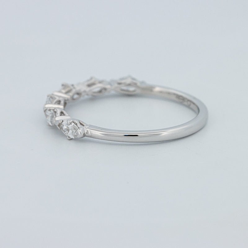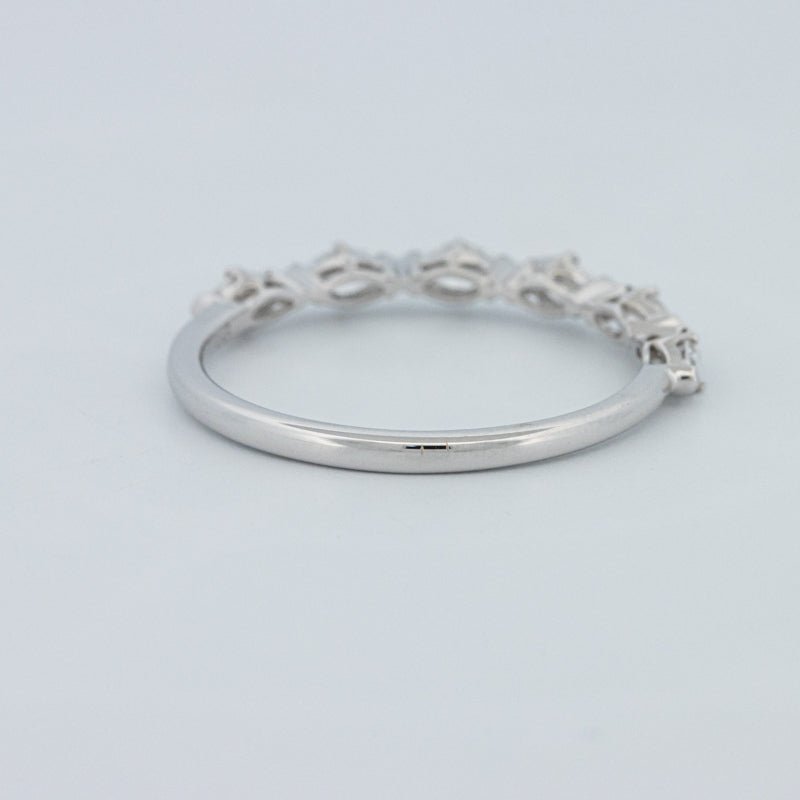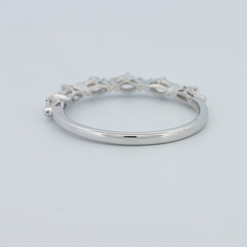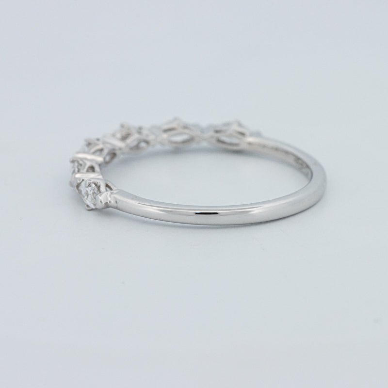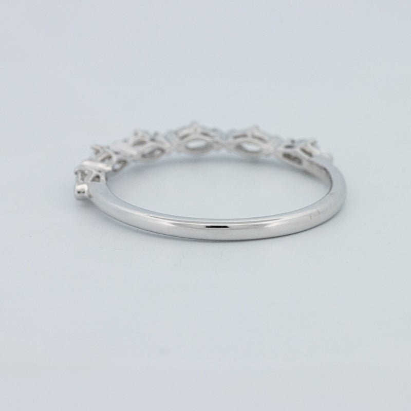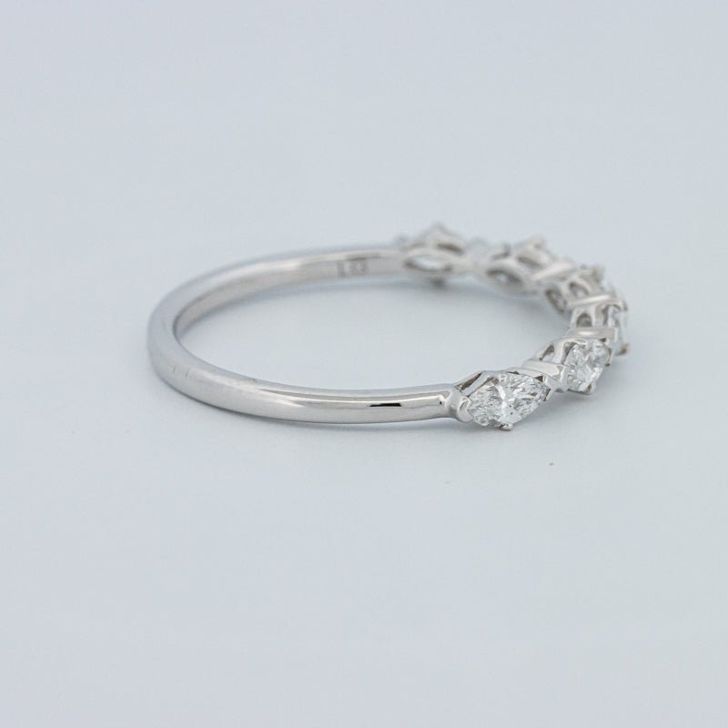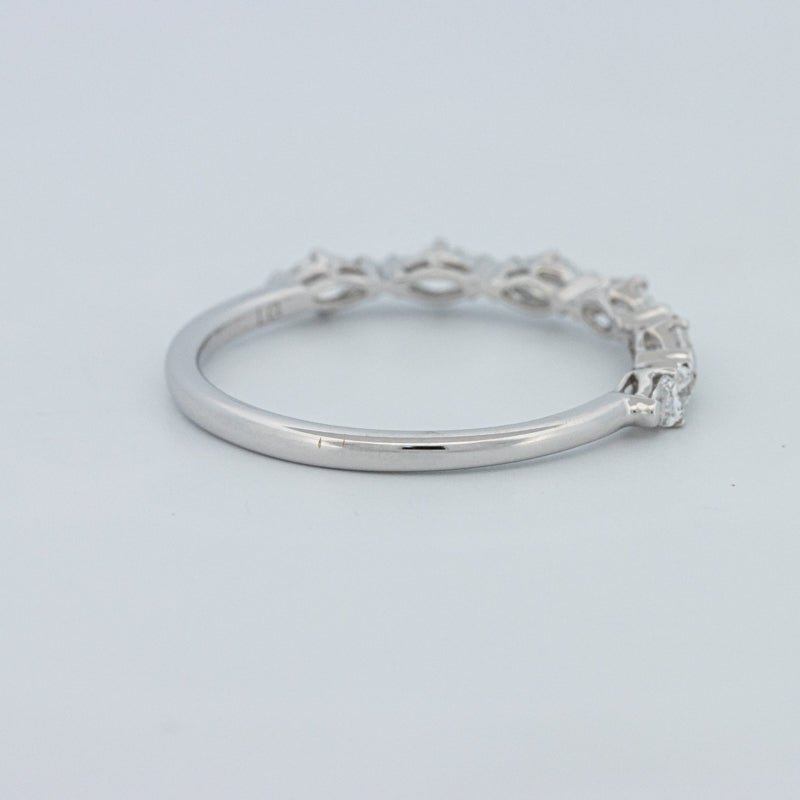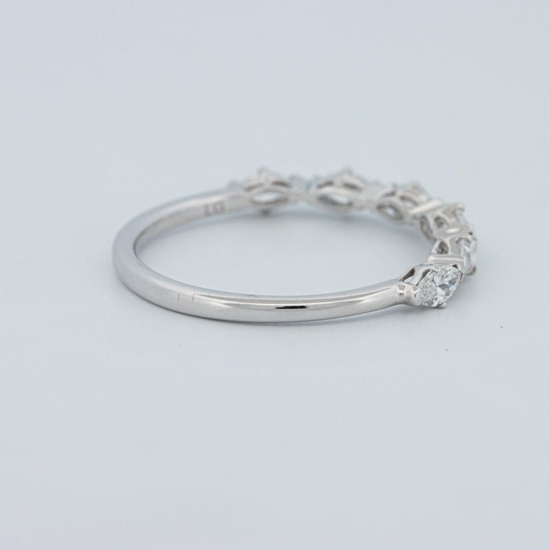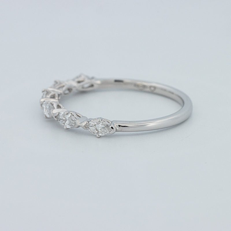 Изысканное полукольцо вечности, украшенное 0.50 ct лабораторно выращенных бриллиантов маркиз в ярком цвете F и чистоте VS для элегантного, удлиненного блеска на пальце.