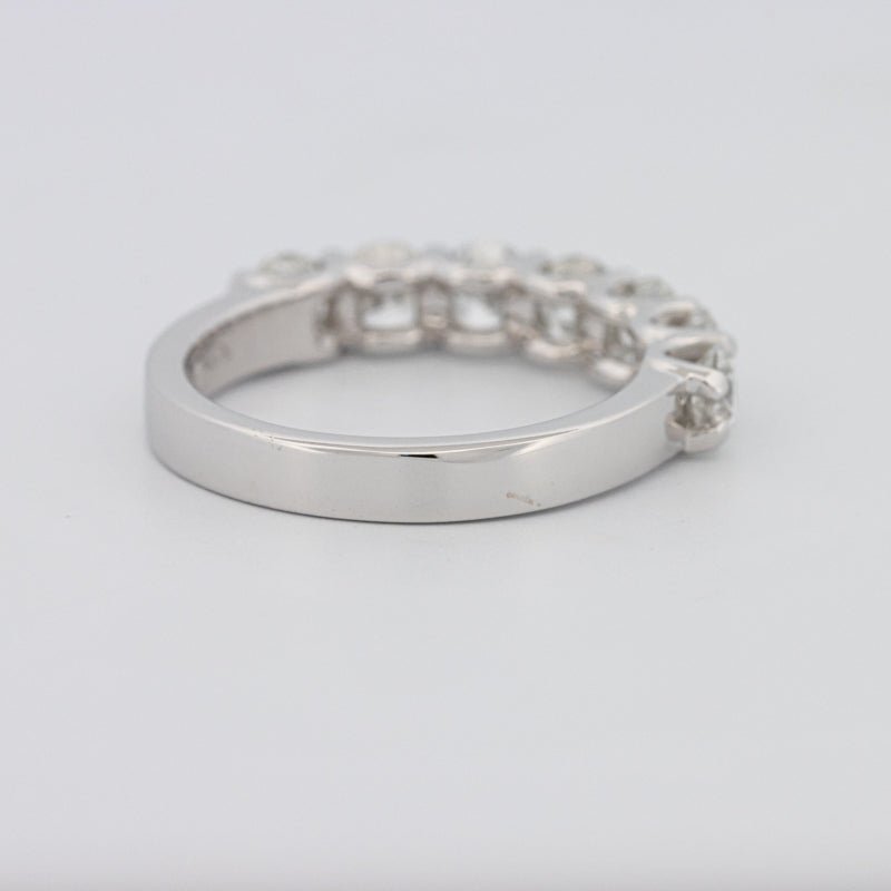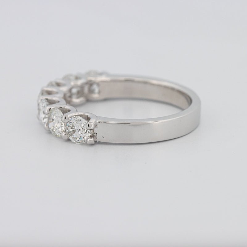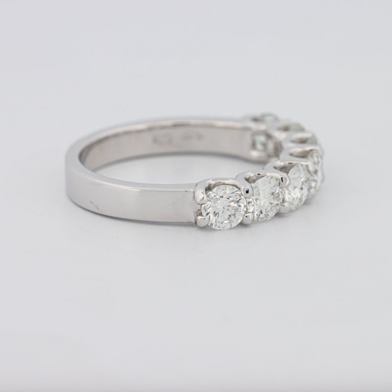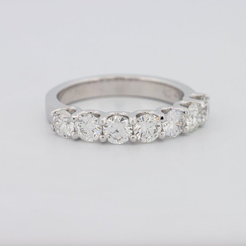 Семь бриллиантов F/VS общим весом 1.37 ct кажутся парящими на изысканной полукруглой полосе, обеспечивая яркое, равномерное сияние с чистым, современным профилем.