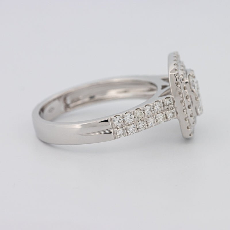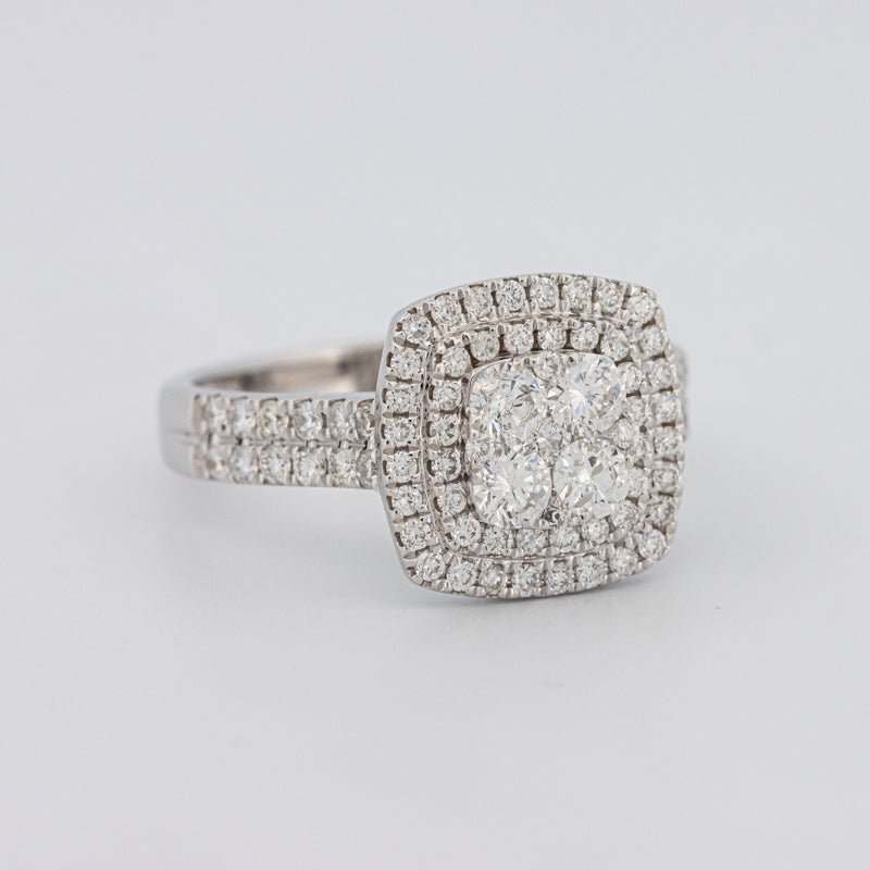 Бесшовная невидимая мозаика составляет 1.10 ct в бриллиантах F/VS для чистого, современного блеска с низким профилем.
