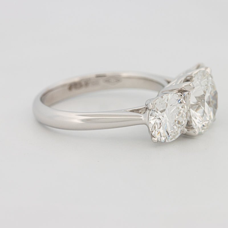Сертифицировано IGI • Lab‑Grown Круглый 2.15 ct — F / VS1 • Боковые Камни 1.06 ct & 1.09 ct — D / VS1 (IGI) • 18K Белое Золото • 5.00g