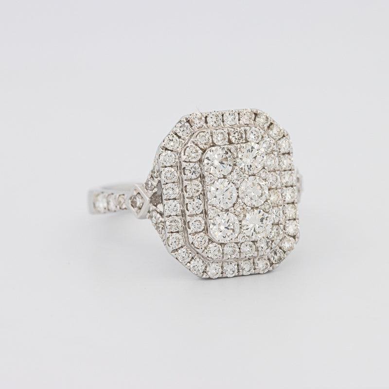 Невидимая установка двойного ореола • 1.34 ct всего • 18K белое золото