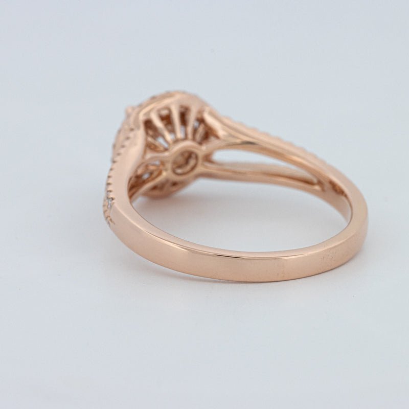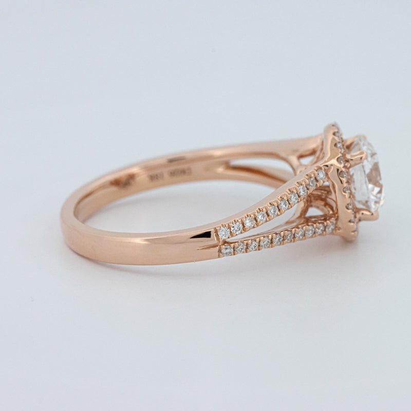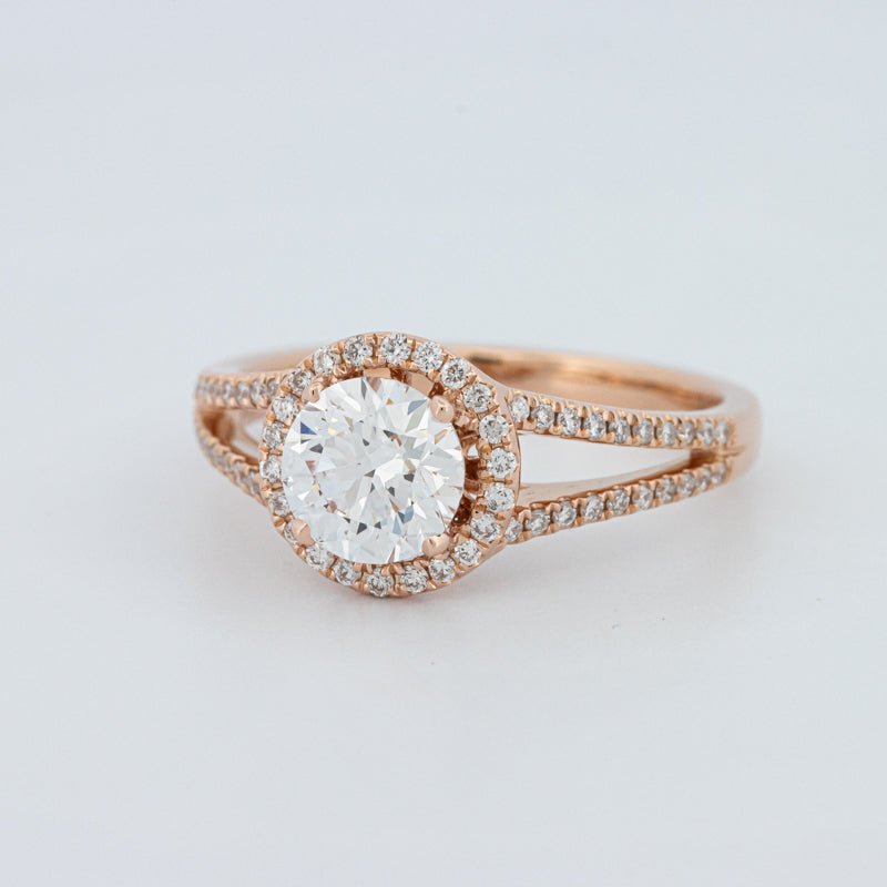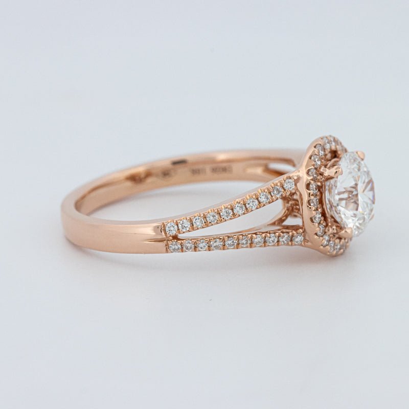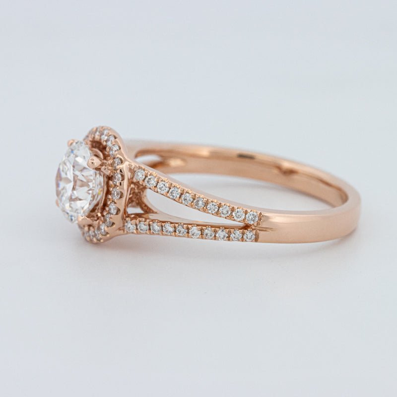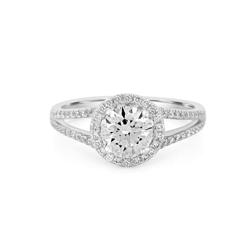 Разделённая шинка и ореол украшены 0.40 ct натуральных бриллиантов, усиливая распространение и игру света, сохраняя при этом утончённый и сбалансированный профиль.