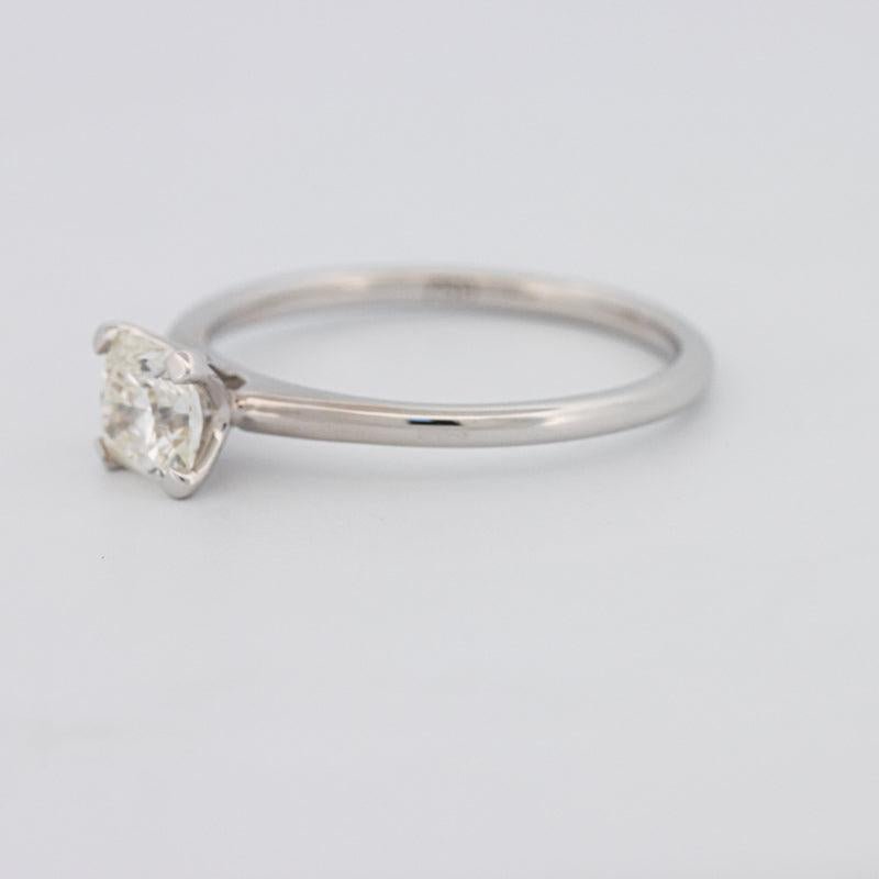 Një rrezatim katror 0.70 ct H/VS1 i certifikuar nga HRD ofron gjeometri të qartë dhe zjarr të balancuar në një profil minimalist dhe të përjetshëm solitaire.