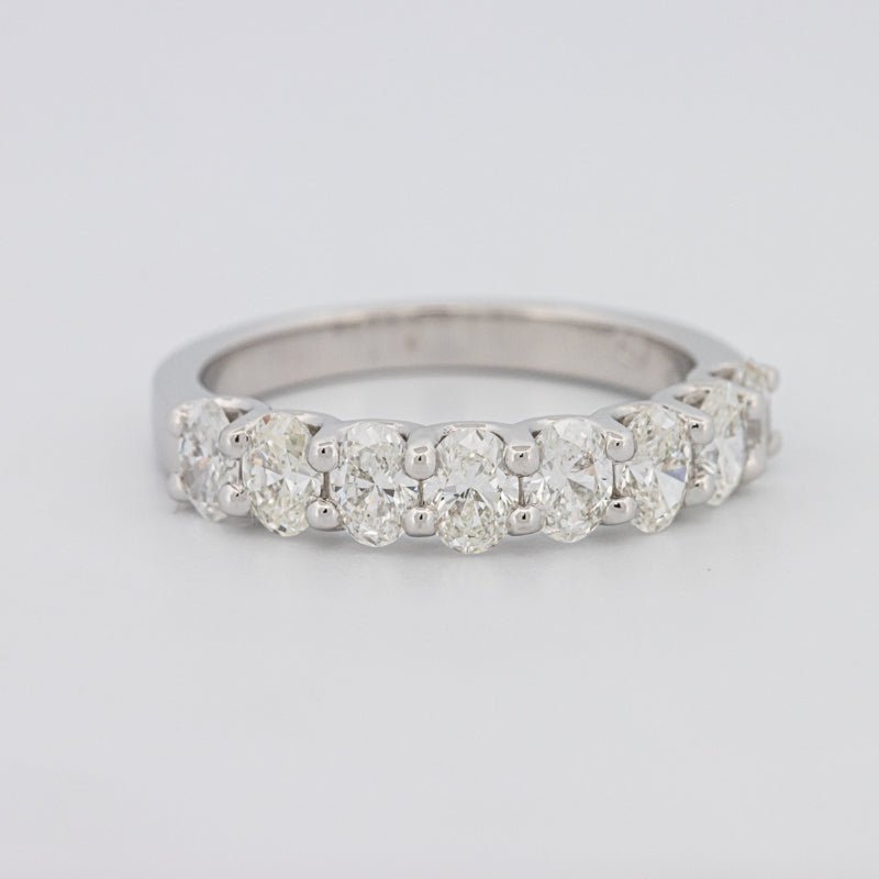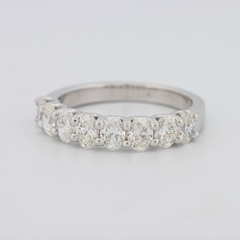 Tetë diamante ovale F/VS me një total prej 1.70 ct lundrojnë pa ndërprerje për një zjarr elegant dhe simetri të rafinuar.