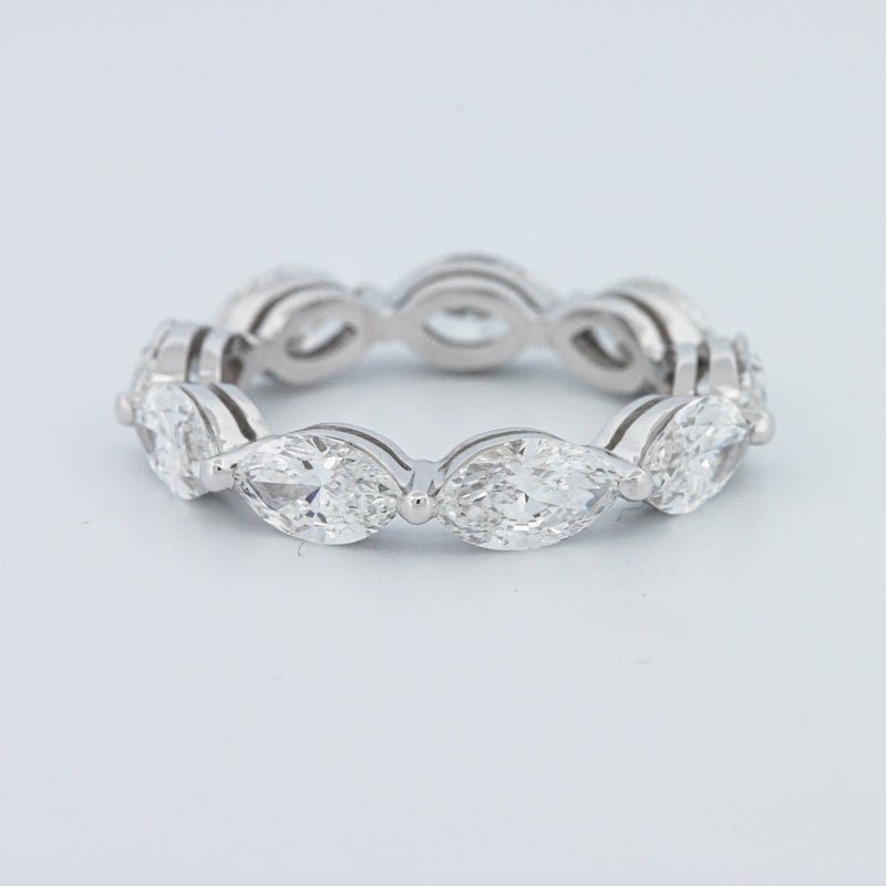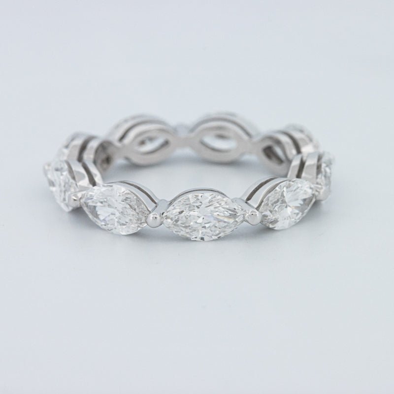 Dizajni i plotë i përjetësisë ofron shkëlqim të pandërprerë, me secilën marquise të orientuar saktësisht për të maksimizuar mbulimin e gishtit dhe shkëlqimin në një vendosje elegante dhe të ajrosur.