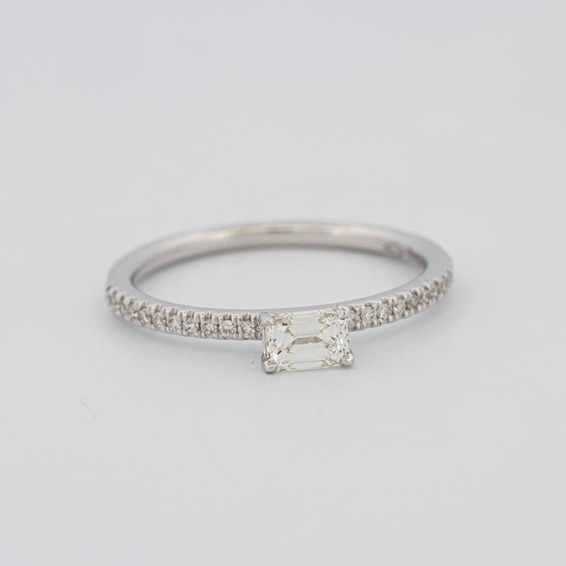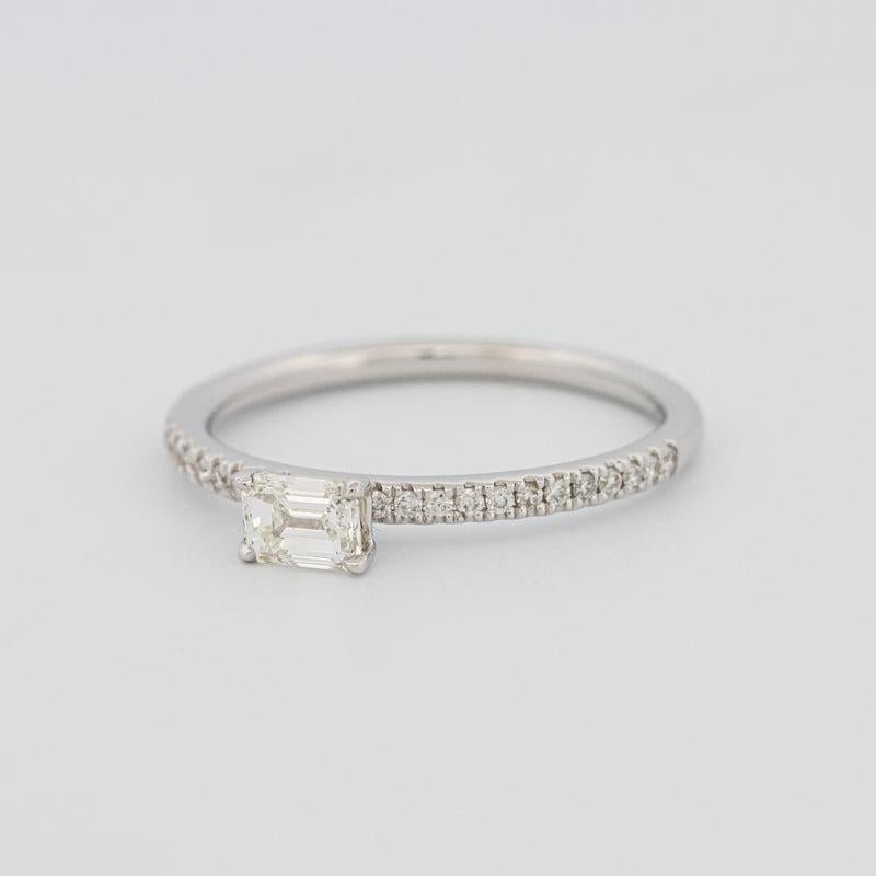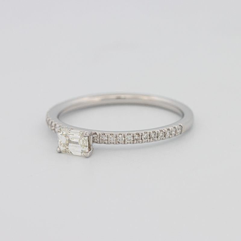 0.30 CT Horizontal Emerald Solitaire Pavé Ring - ZIZOV DIAMONDS