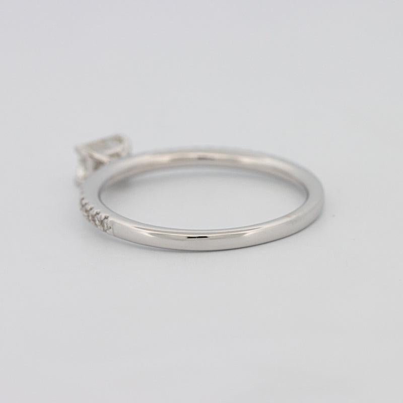 Nje qendër e ndritshme 0.34 ct F/VS është e kombinuar me thekse të lehta 0.15 ct për një solitare të rafinuar që balancon përmasat delikate me shkëlqimin e gjallë.