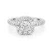 Nje qendër Square Radiant F/VS1 e rrethuar nga një halo e ndritshme ofron një prani elegante dhe shkëlqim të amplifikuar.