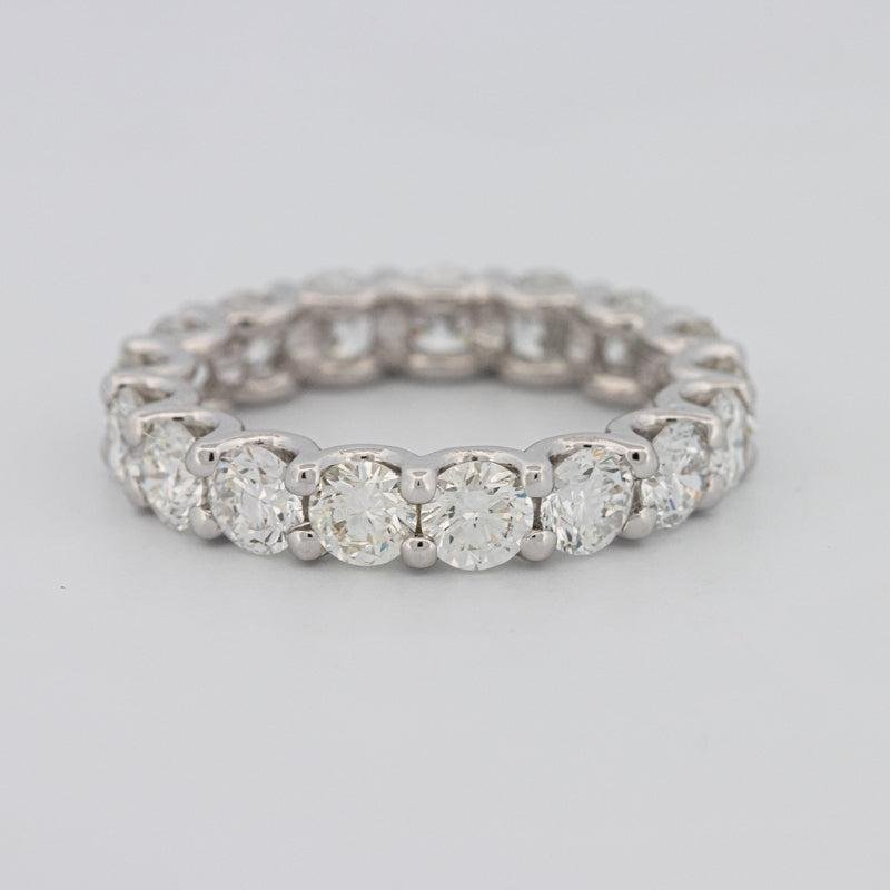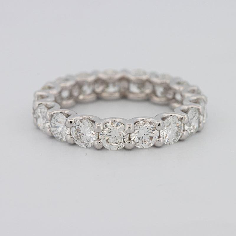 Shtatëmbëdhjetë diamante të rrumbullakëta me ngjyrë F/G dhe pastërti VS, me një total prej 3.23 ct, formojnë një rreth të vazhdueshëm shkëlqimi për të festuar dashurinë pa fund.