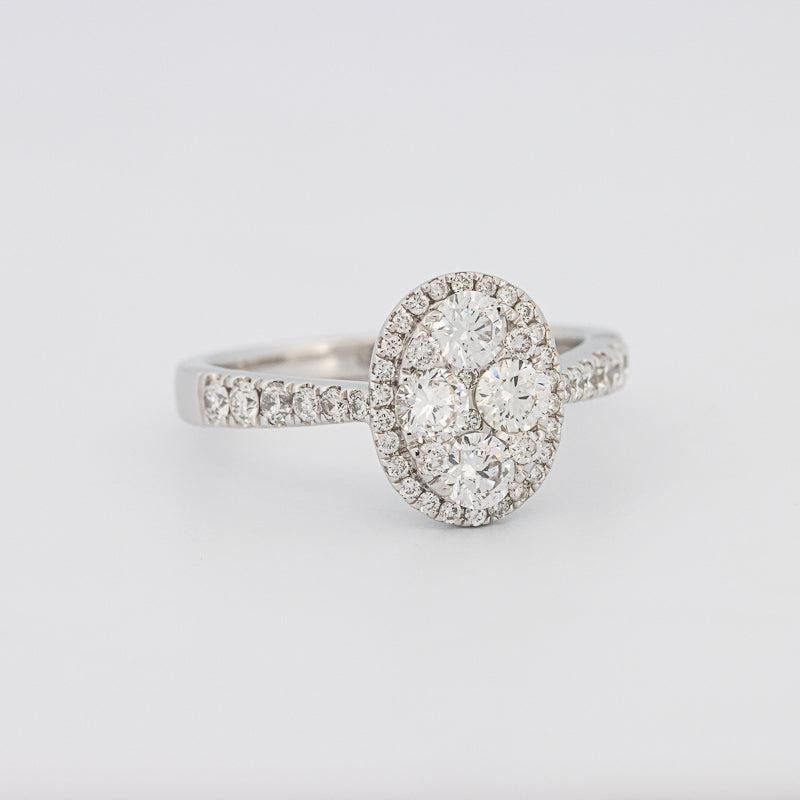 Profil Ovale me Vendosje të Padukshme • 1.08 ct Total • 18K Ar i Bardhë