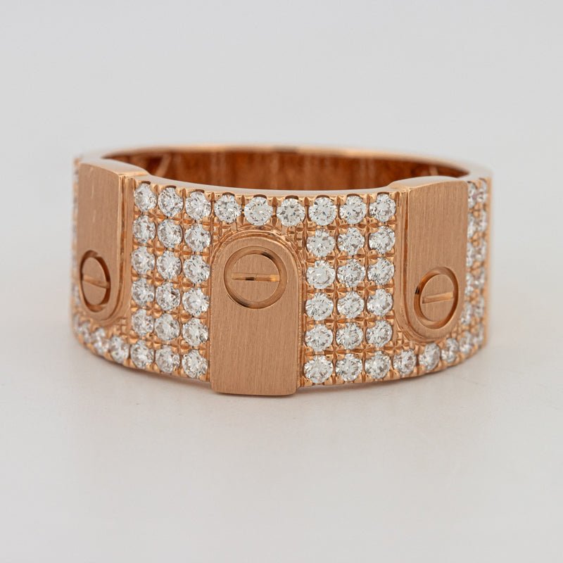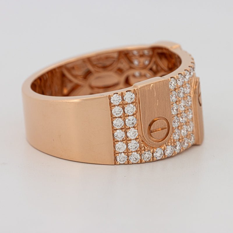 Një profil i konsiderueshëm 18K ar rozë tregon 1.25 ct diamante natyrale, duke ofruar një prani të sigurt me detaje të inxhinieruara.